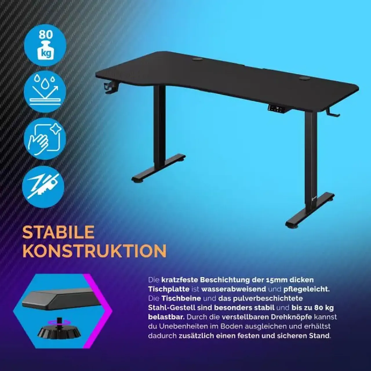 Стіл з регулюванням висоти електричний Casaria 160x75, чорний