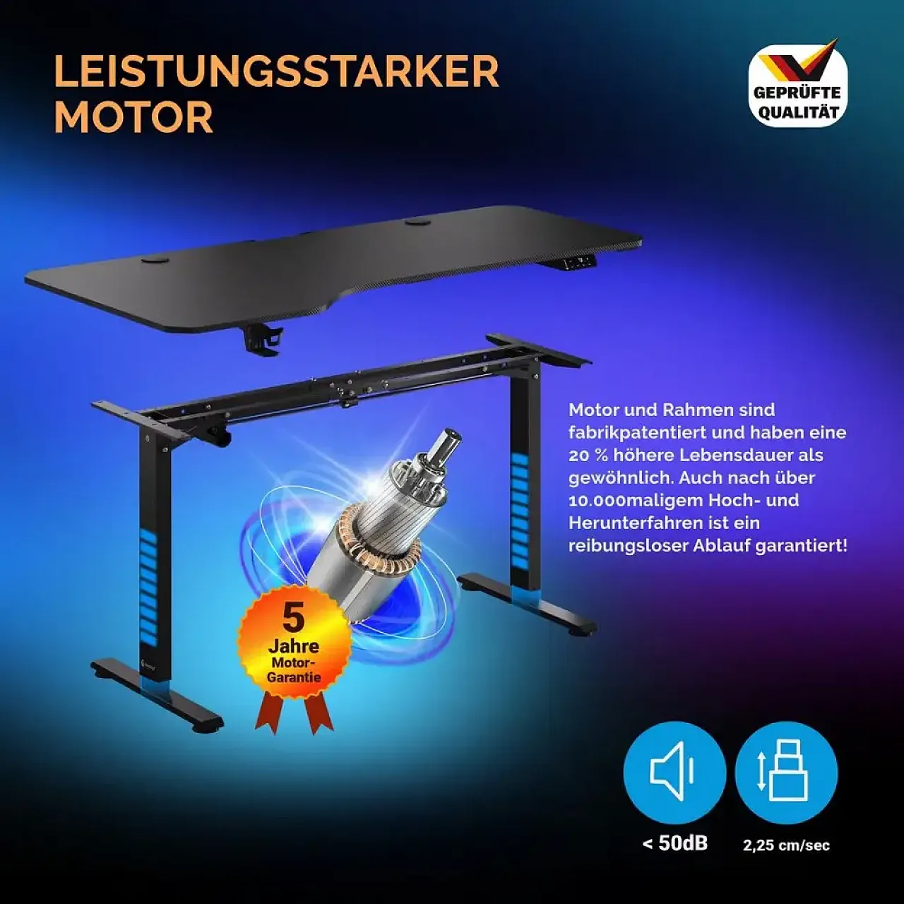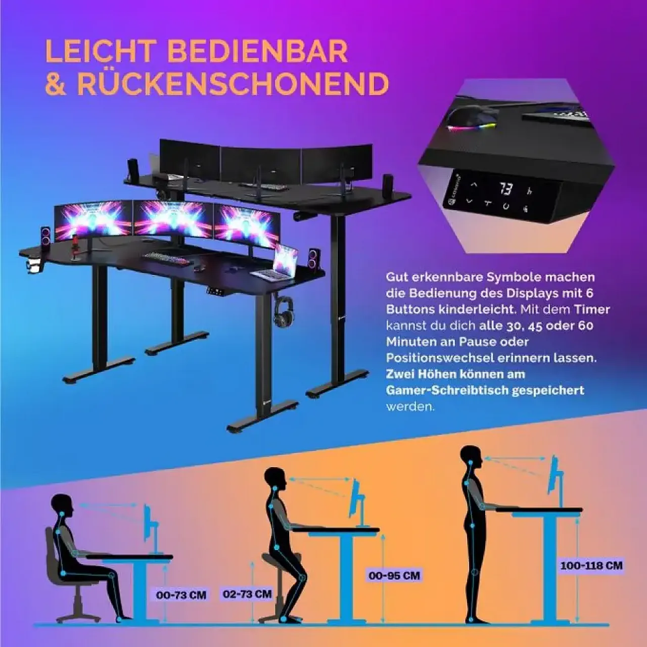 Стіл із встановленим рідкокристалічним дисплеєм можна піднімати зі швидкістю 2,25 см/с, двигун працює плавно та тихо (при 50 дБ). Контроллер столу також має функцію пам'яті та нагадування.