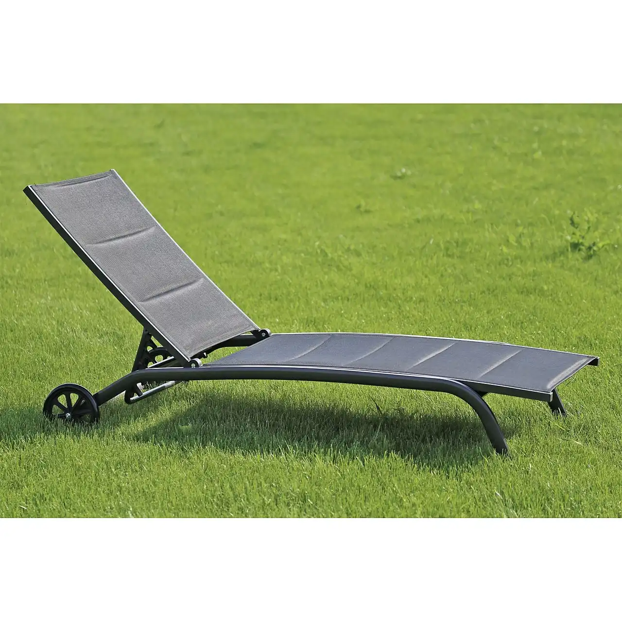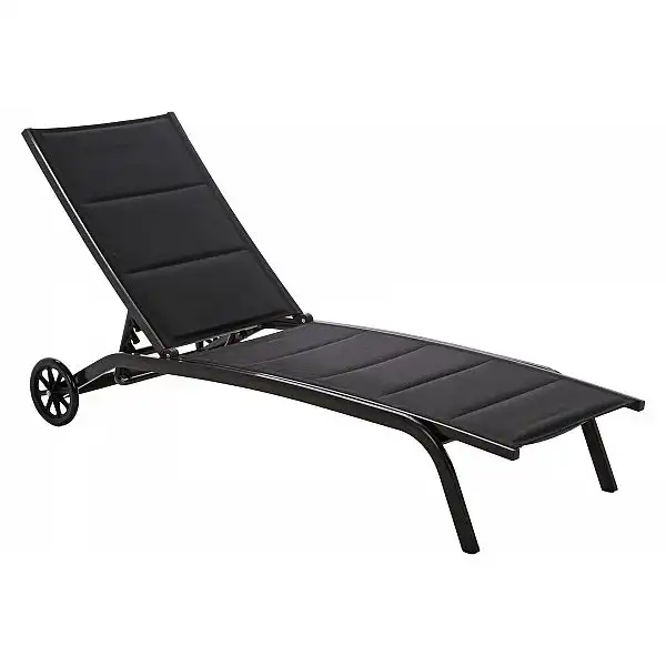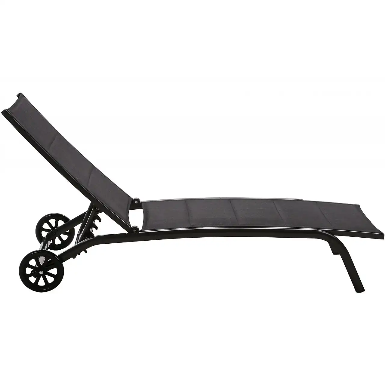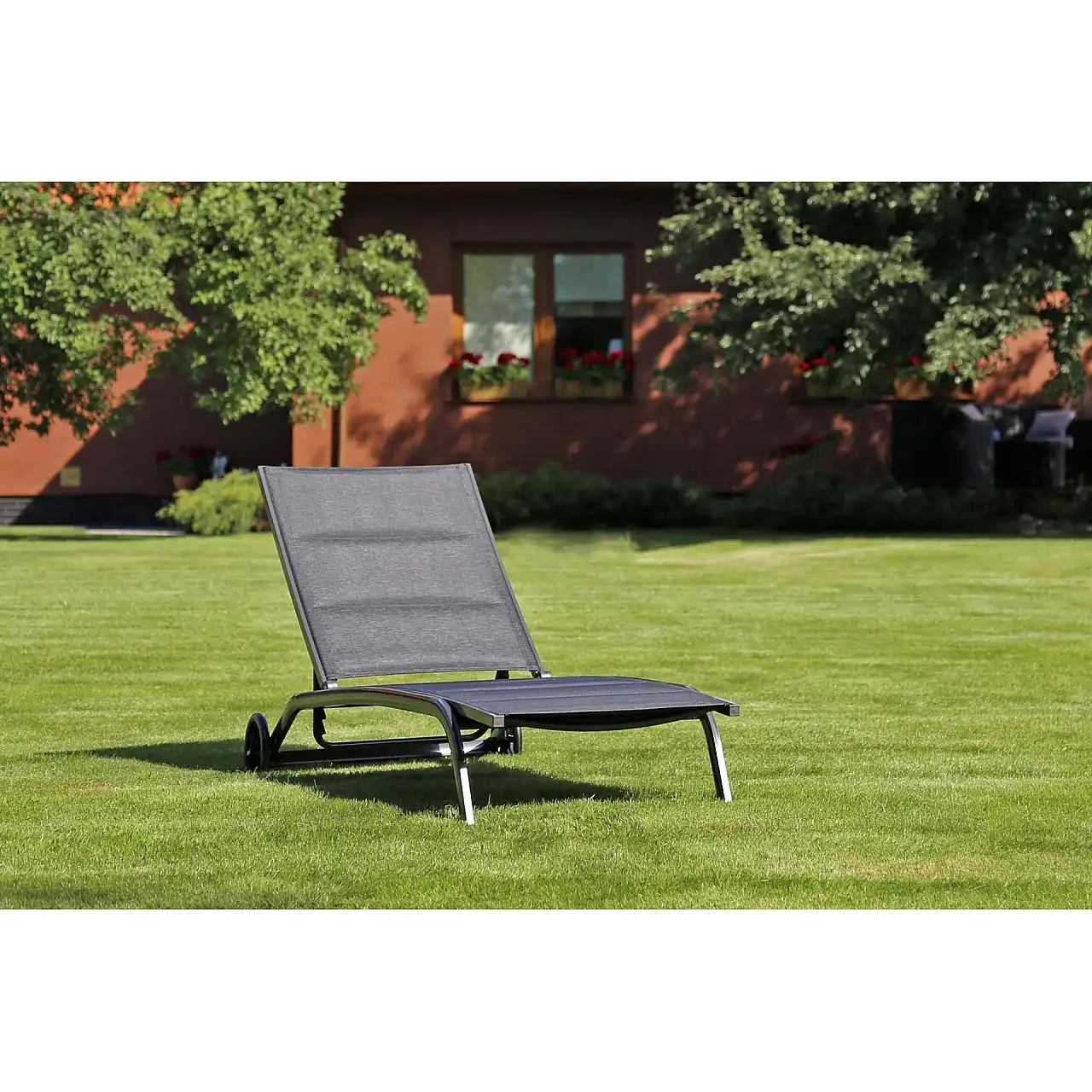 Зручна спинка регулюється в шести положеннях, що дозволяє користувачеві знайти ідеальне положення для себе, незалежно від того, чи хоче він читати, подрімати чи просто лежати та милуватися небом. Чорний садовий шезлонг гарно виглядає в будь-якому сучасному саду або біля басейну.