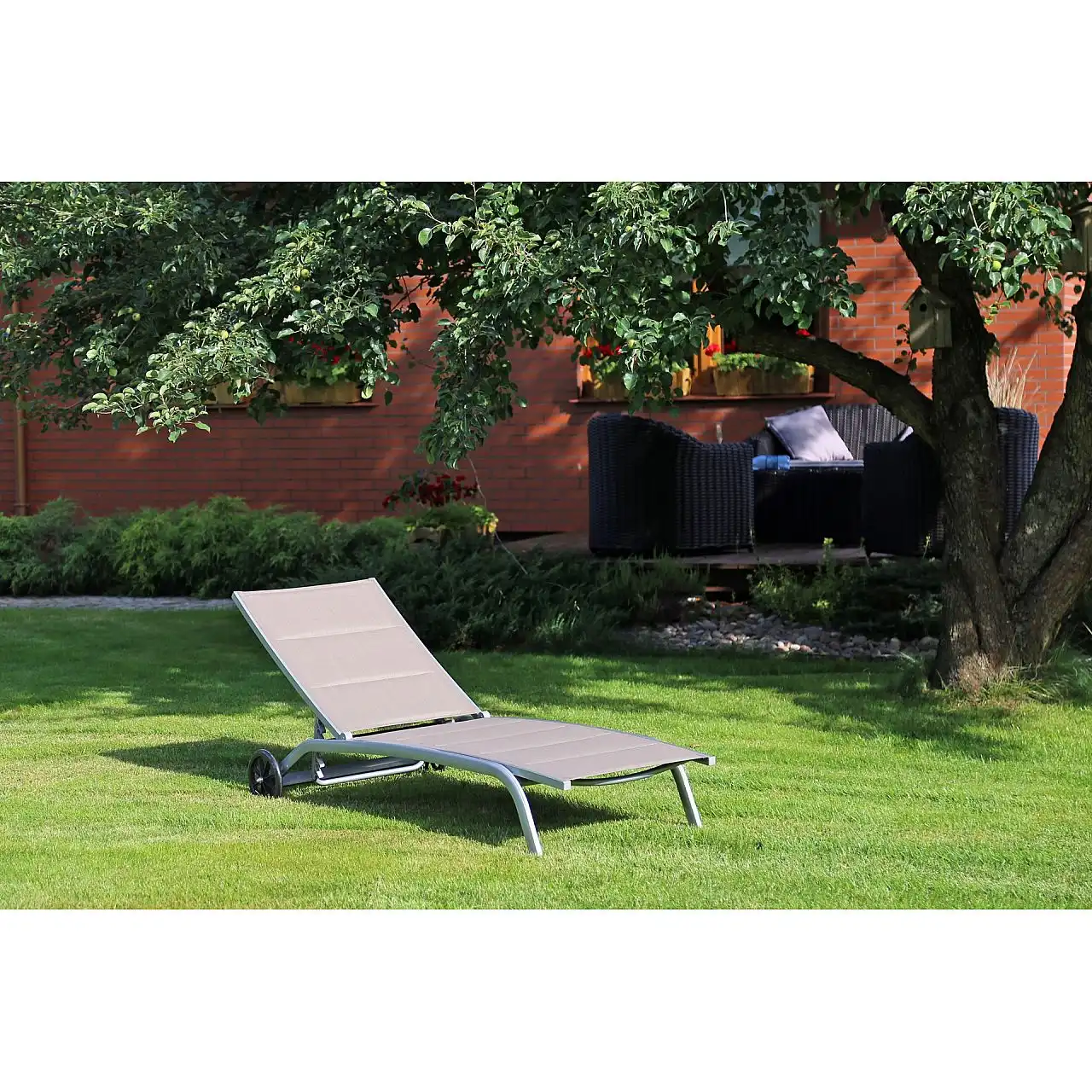 Комфорт - це слово, яке ідеально описує цей предмет меблів. Бежевий садовий шезлонг Ibiza оснащений регульованою спинкою, яку можна встановити в 6 положеннях. Це забезпечує додаткову функціональність і дозволяє адаптувати шезлонг до різних видів діяльності . Ви можете відрегулювати його в правильне положення для роботи або розкласти спинку для сну. Варто додати, що ця модель оснащена колесами. Завдяки цьому у вас не виникне проблем з розміщенням шезлонга у вибраному місці.