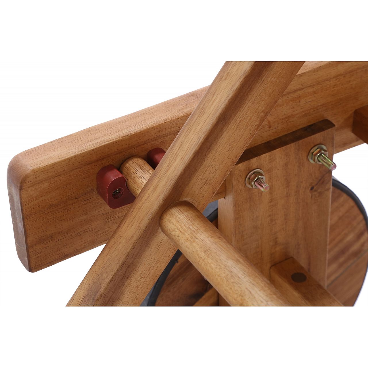 Дерев'яний садовий шезлонг на колесах Akacja Lux – це предмет меблів, який однаково добре підійде як для саду, так і для тераси чи навіть для великого балкону . Він виготовлений з екзотичної деревини акації , породи, яка ідеально підходить для виробництва садових меблів . Шезлонг має спинку, яку можна регулювати у 3 положеннях – тож ви можете не лише подрімати під прислів’ям груші , а й розслабитися, читаючи книгу сидячи . Шезлонг оснащений практичною висувною полицею , яку можна витягнути з-під сидіння з лівого або правого боку. Меблі можна легко перемістити в будь-яке місце – за допомогою встановлених коліс кожен може зробити це легко та ефективно, тим більше, що на верхній щаблі сидіння також є ручка .