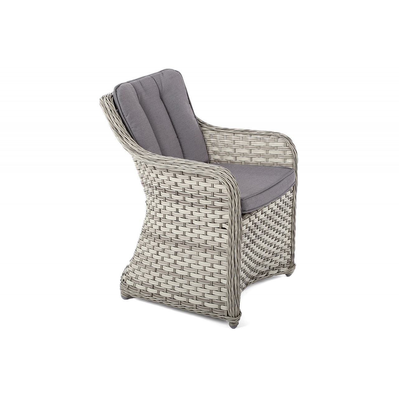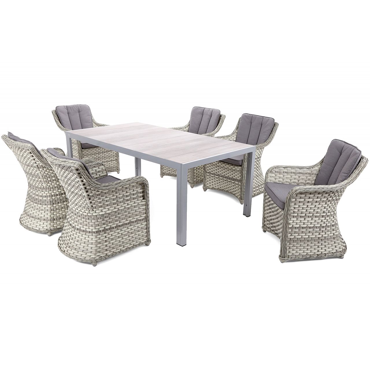 Крім столу, в набір також входять 6 дуже зручних садових крісел Dallas. Вони покриті техноротангом, який наплетений на алюмінієву конструкцію з порошковим покриттям. Обидва ці матеріали надзвичайно міцні та стійкі до несприятливих погодних умов, таких як ультрафіолетове випромінювання, волога чи низька температура.