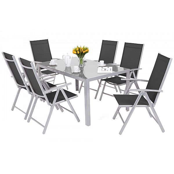 Каркаси всіх елементів садових меблів Corfu Basic виготовлені з алюмінію з порошковим покриттям . Завдяки використанню спеціальної конструкції столу (П-подібні профілі) він надзвичайно стійкий і зручний у використанні. Стільці легко поміщаються під стільницею, і є достатньо місця для ніг. Стільниця виготовлена з атласного, загартованого скла, легко миється, тонованого темно-сірого кольору . Стільці оснащені сидіннями та спинками з текстильного полотна , яке ідеально підходить для будь-яких погодних умов. Комфорт забезпечують підлокітники і спинки, які регулюються в декількох положеннях. Набір садових меблів Corfu Basic легко зберігати: стільці можна скласти, а стіл можна розібрати . Завдяки матеріалам, з яких вони виготовлені, меблі стійкі до погодних умов . Естетичність виготовлення та міцні компоненти гарантують, що вони прослужать користувачам довгі роки .