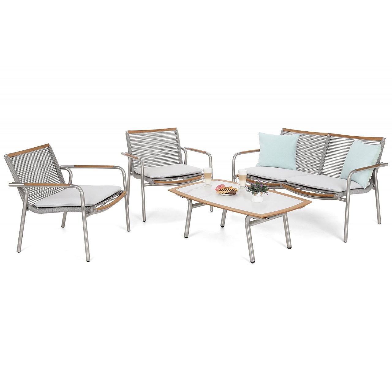 Пропонований набір - меблі для найвибагливіших людей. Дизайн обладнання перетворить будь-яку терасу і додасть їй неповторний характер. Стійка конструкція меблів, профільовані спинки та відповідні м’які подушки забезпечують максимальний комфорт під час відпочинку в саду. А столик – це улюблена кава чи освіжаючий сік завжди під рукою!