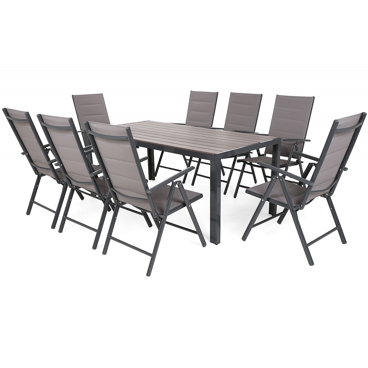 Стіл і стільці виготовлені з високоякісного алюмінію з порошковим покриттям. Пропонований набір включає стільницю з неводовбираючих композитних плит WPC, які використовуються, в тому числі, для виробництва сучасних терасових і фасадних систем. Найважливішим конструктивним елементом столу є 4 П-подібних алюмінієвих профілю. Їх використання робить стіл надзвичайно стійким після складання! Таке рішення дозволило звільнити простір під столом і уникнути непотрібних додаткових конструкцій, які заважають комфортному користуванню меблями.