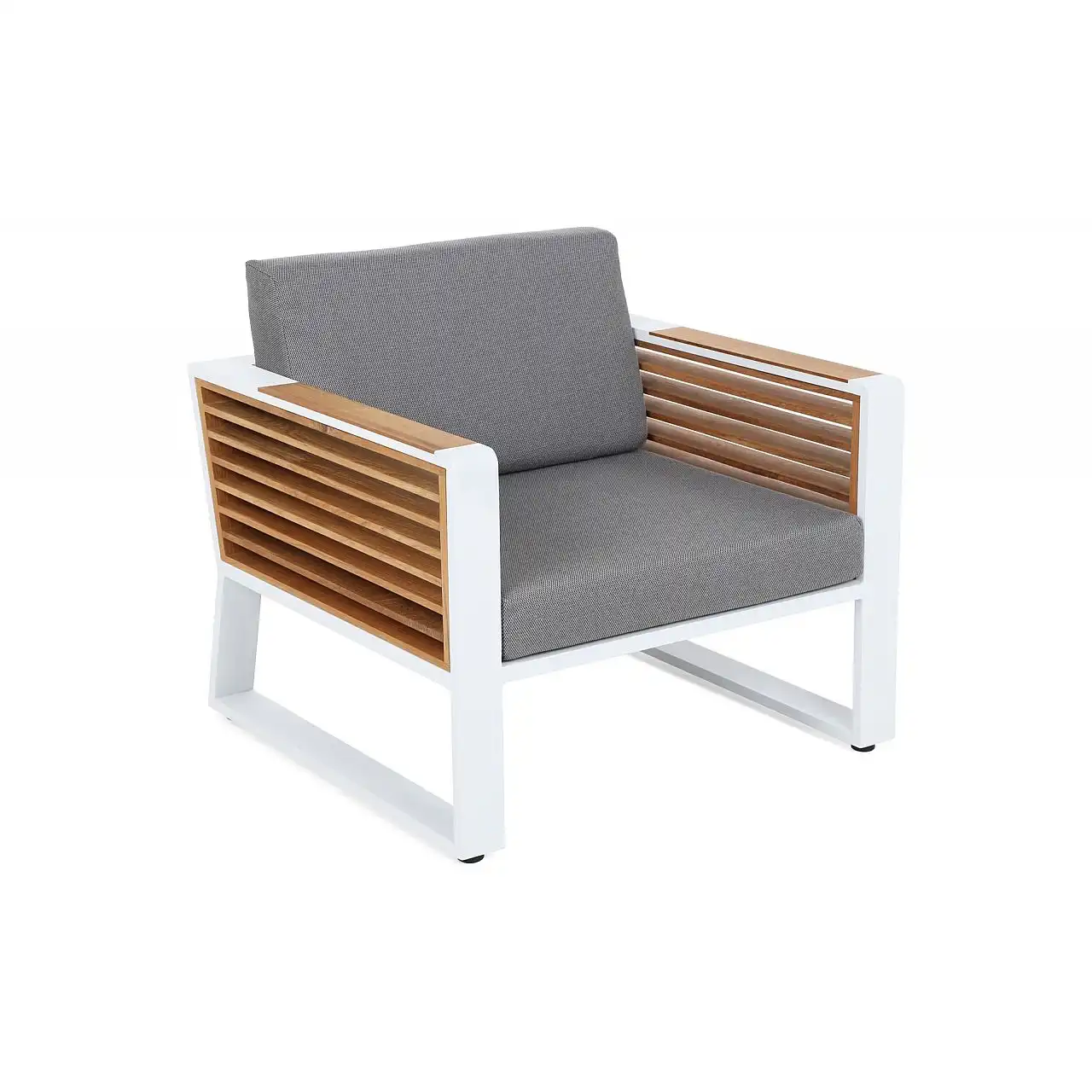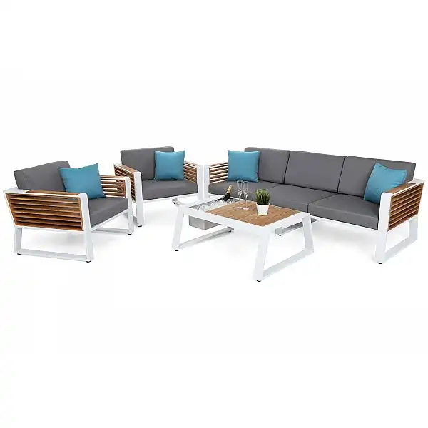 Сучасні, стильні та надзвичайно вражаючі - такі алюмінієві садові меблі ми пропонуємо. Однією з таких унікальних пропозицій є набір Singapore, який чудово поєднує сучасний дизайн з легкою формою та ексклюзивним характером. Шукаєте унікальні садові меблі для своєї тераси? Комплект Сінгапур з алюмінію і тикового дерева, оснащений приємно м'якими подушками, неодмінно зачарує вас.