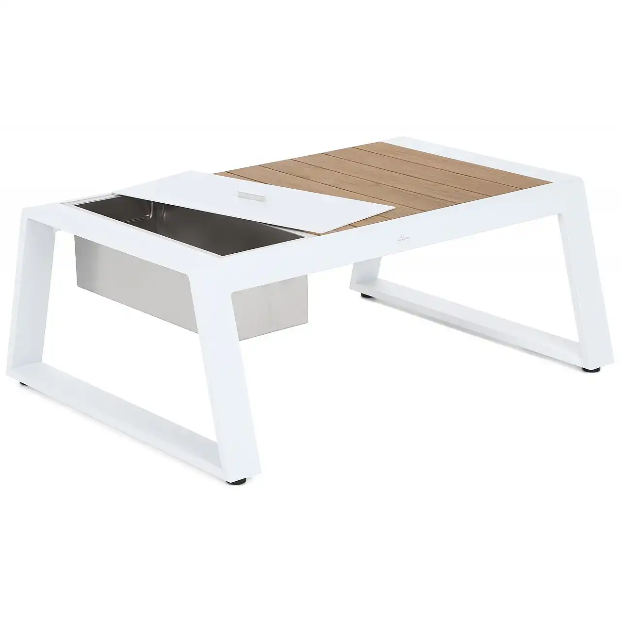 У набір входять два зручних крісла, великий диван і функціональний стіл з контейнером, що закривається зверху - ідеально підходить для зберігання та охолодження напоїв!