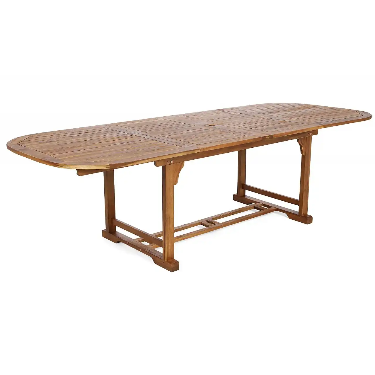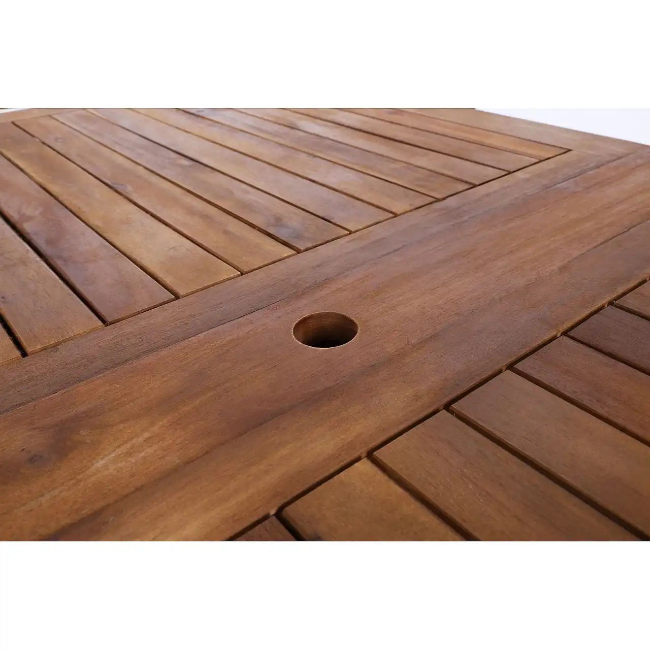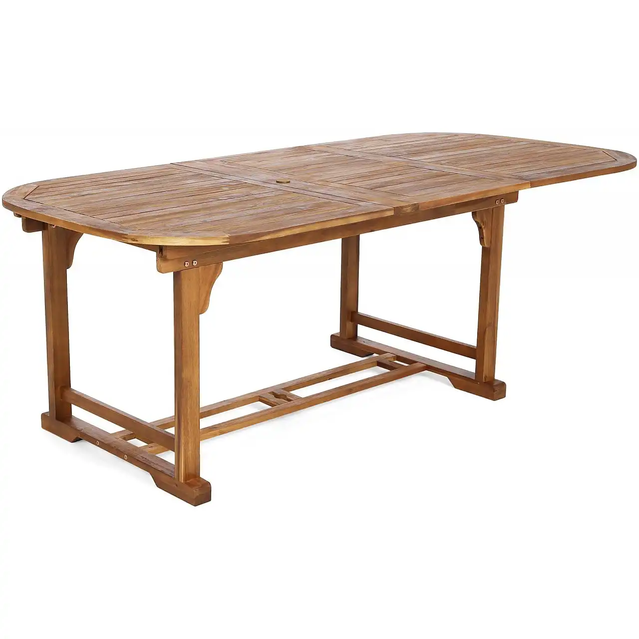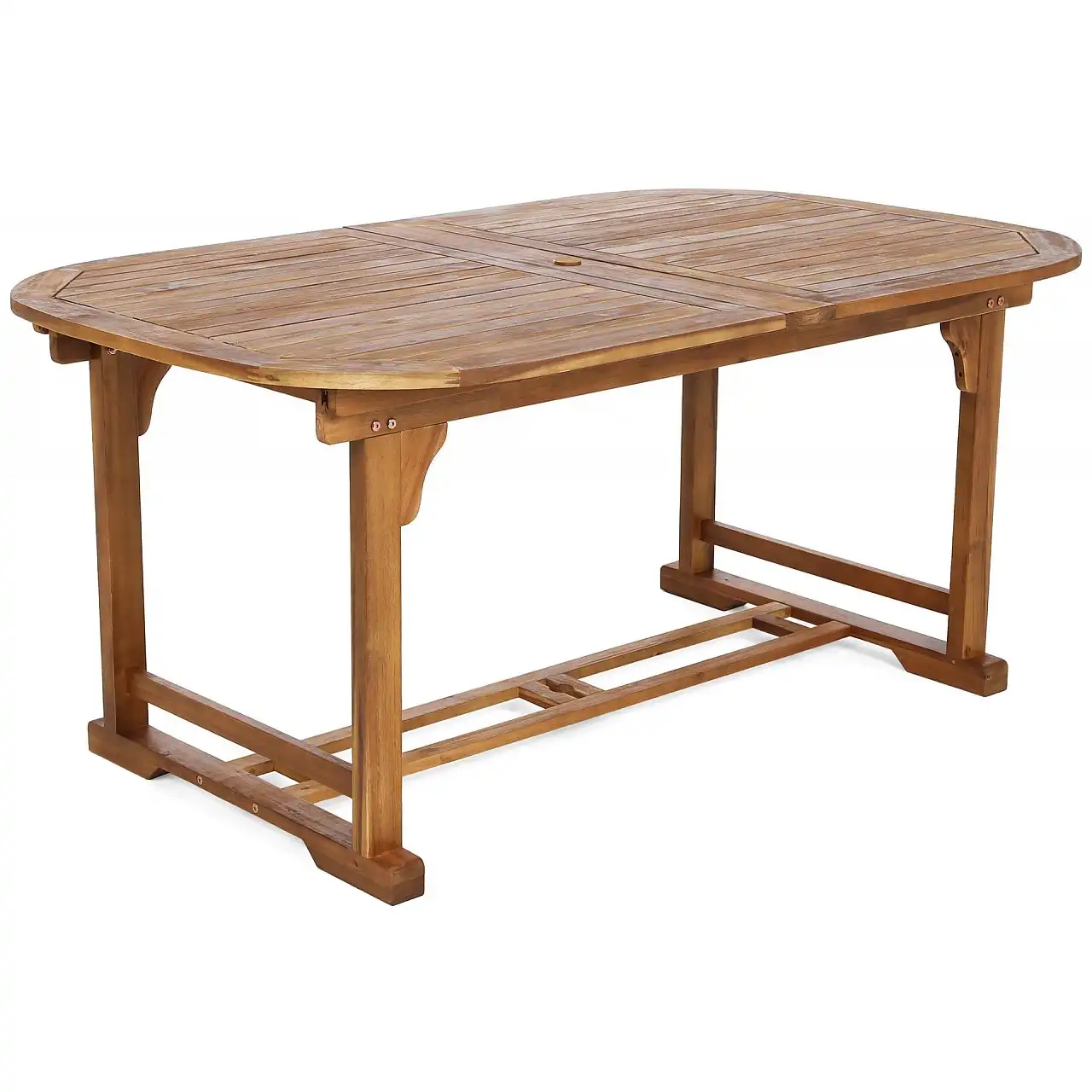 Дерев'яний стіл з комплекту Acacia Oval можна розкласти до різної ширини – 165 см, 215 см, 265 см. Крім того, посередині є отвір для парасольки, яка забезпечить приємну тінь у спекотні дні.