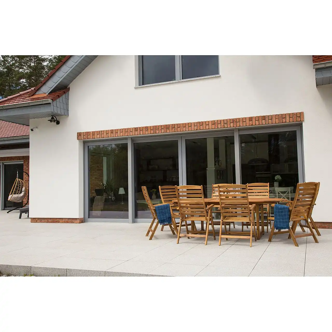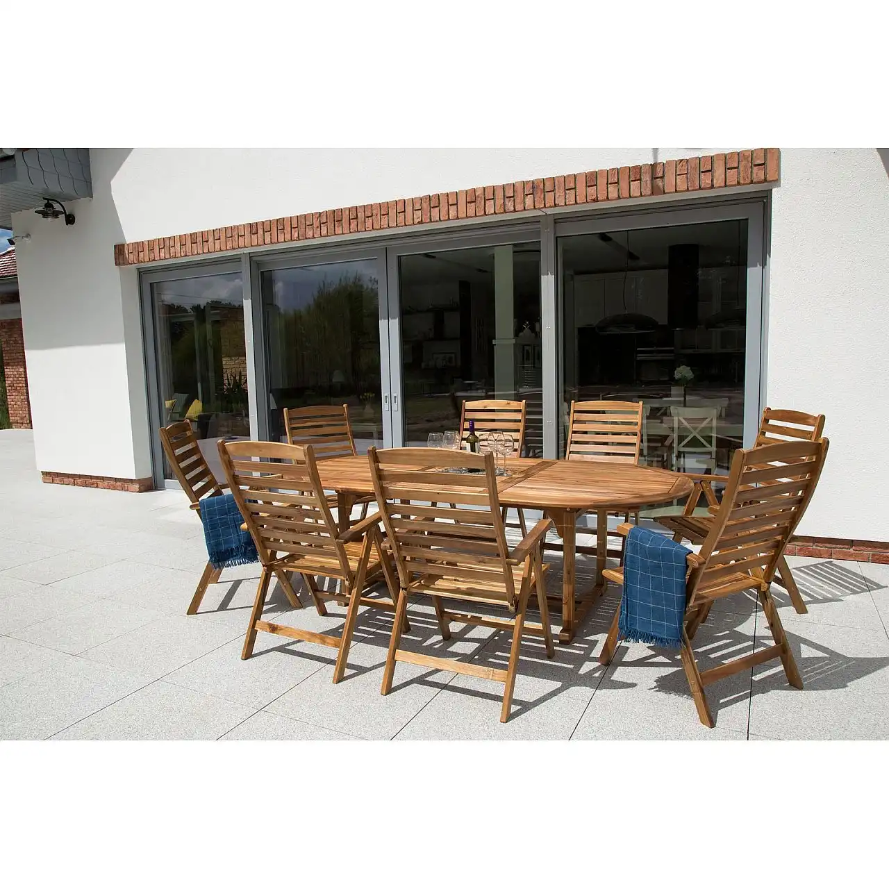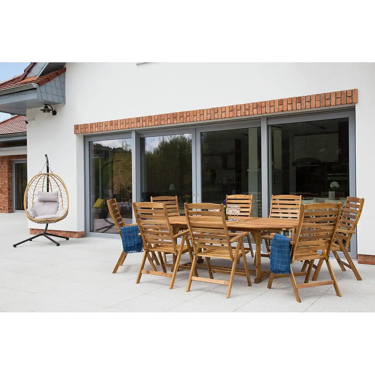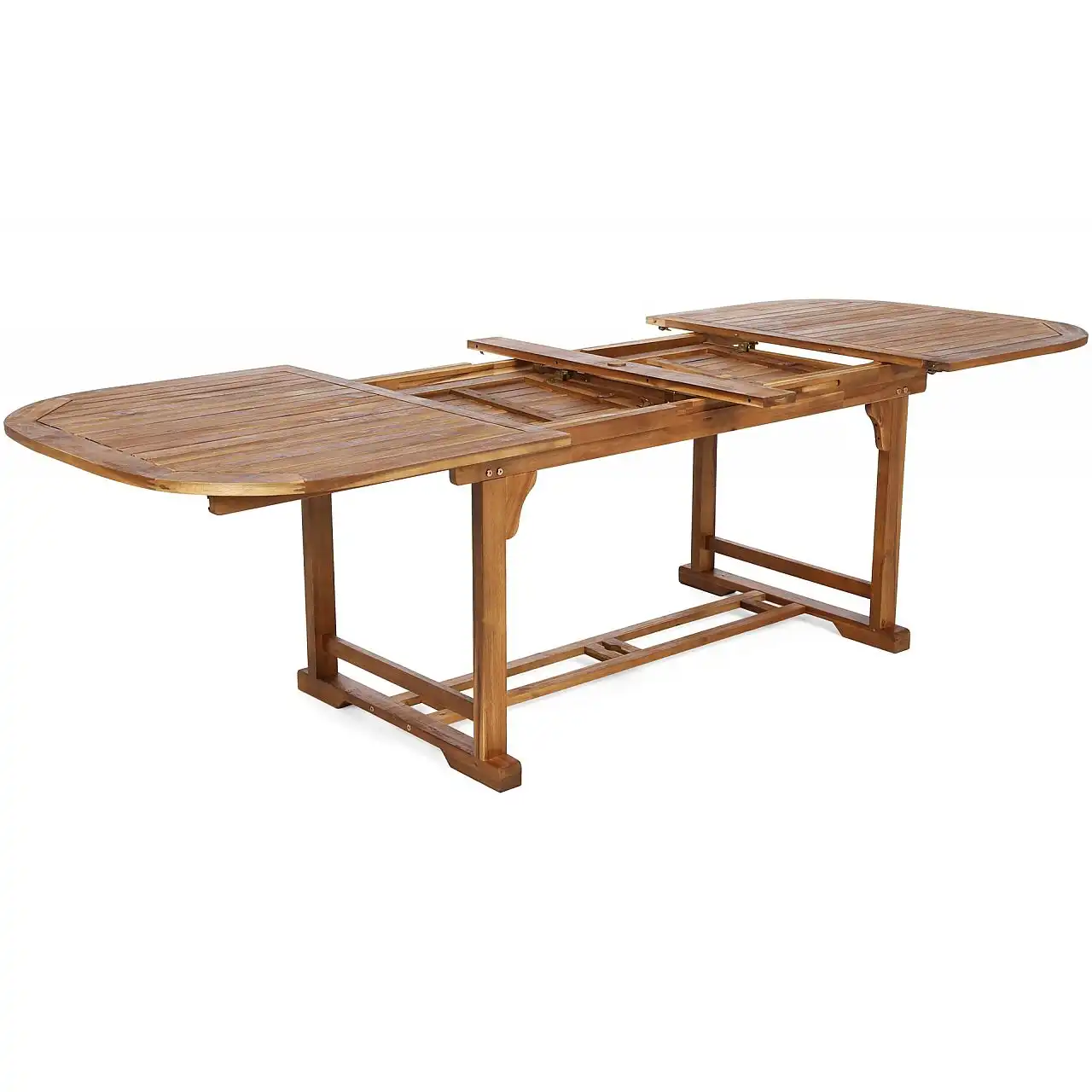 Дерев'яний стіл з комплекту Acacia Oval можна розкласти до різної ширини – 165 см, 215 см, 265 см. Крім того, посередині є отвір для парасольки, яка забезпечить приємну тінь у спекотні дні.