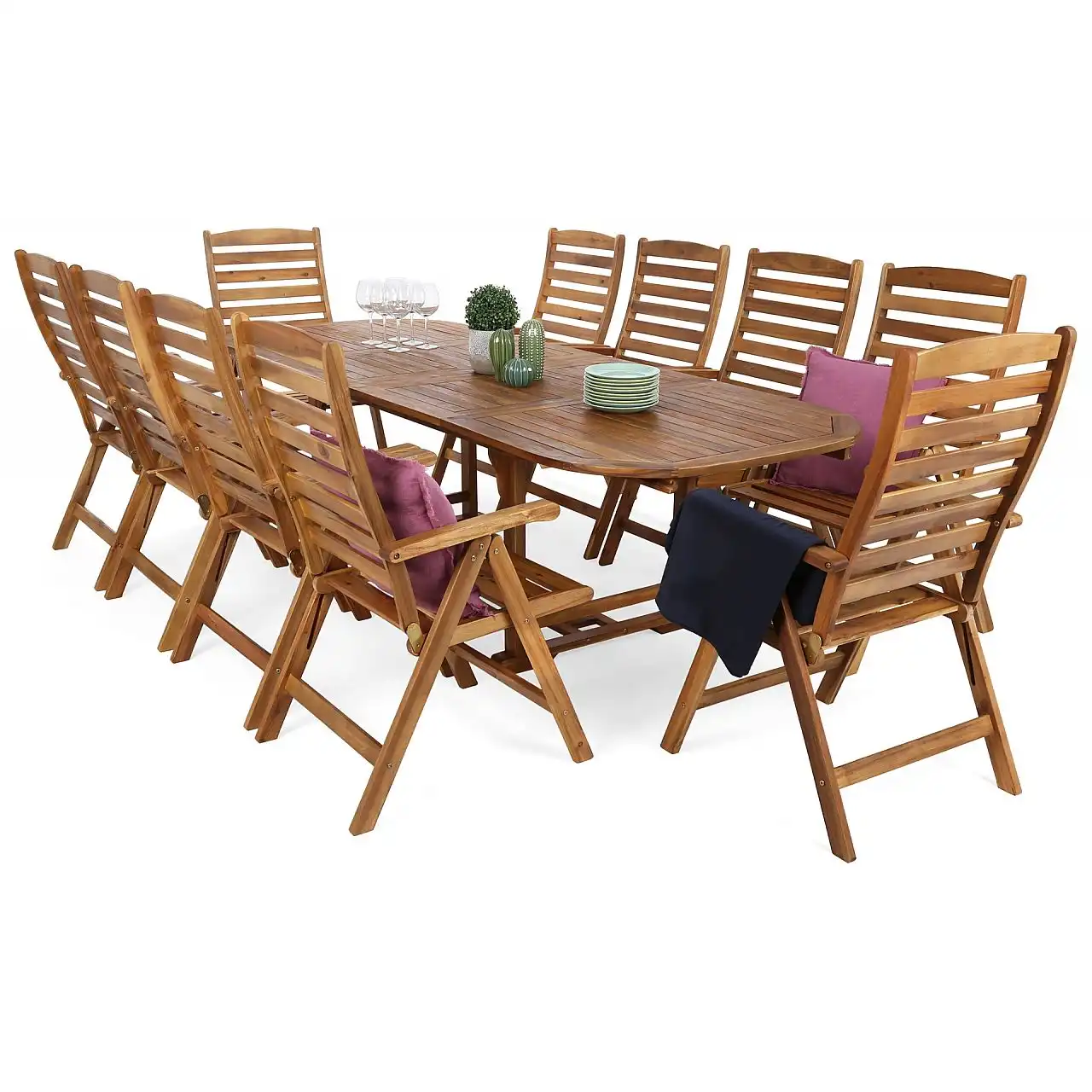 Відпочинок на власній терасі – один із найкращих способів розслабитися. Правильно підібрані садові меблі також допомагають організувати зустрічі з близькими в саду, що дарує багато радості. Функціональні та позачасові дерев'яні меблі Akacja Oval - це комплект для 10 осіб, який з комфортом розмістить усіх запрошених гостей.