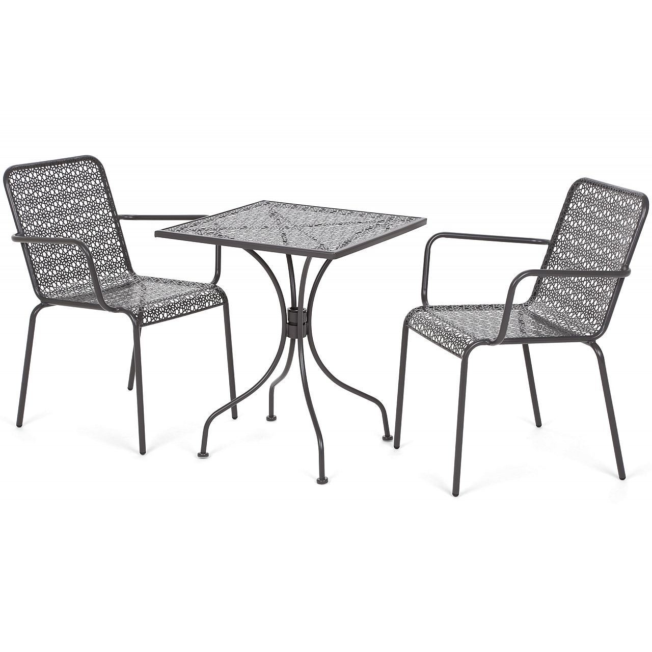 Садові меблі Maja Square відрізняє сучасний ажурний дизайн. Вони повністю виготовлені зі сталі з порошковим покриттям. Завдяки цьому, незважаючи на свою тонку конструкцію, вони надзвичайно міцні. Крім того, спосіб нанесення фарби гарантує їх стійкість до погодних умов і механічних пошкоджень. Набір пофарбований напівматовою фарбою, що надає йому сучасного вигляду. Крім того, на такій поверхні не видно бруду і слідів рук. Ніжки столу та стільців захищені пластиковими наконечниками, які додатково захистять підлогу від подряпин.