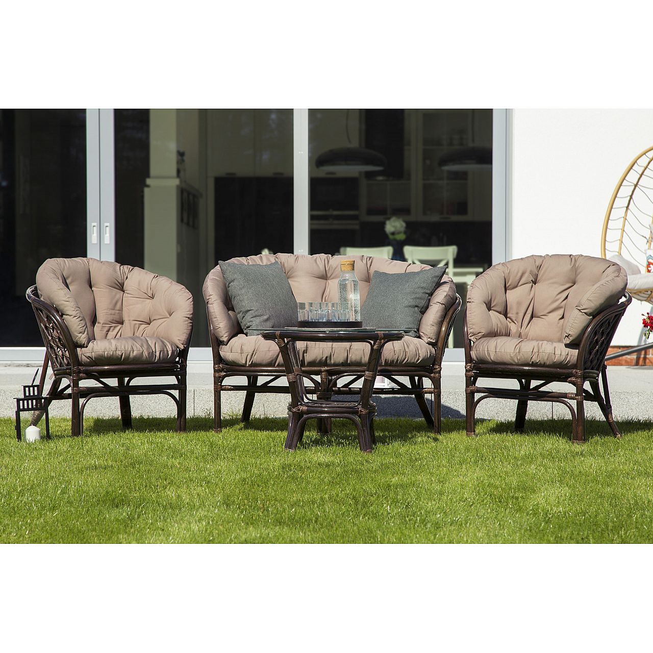 Одним із найпопулярніших продуктів у нашій широкій пропозиції є садові меблі з ротанга Bahama . Їх точно вишуканий дизайн зігріє інтер'єр будь-якої вітальні, тераси або саду. Комплект складається з дивана, двох крісел і столу. І крісла, і диван обшиті зручними подушками, покритими оббивкою з приємної на дотик суміші бавовни та поліестеру. Дуже важливу роль у всьому наборі відіграє оформлений зі смаком стіл. Його верхня частина виготовлена з міцного загартованого скла. Невелика полиця (наприклад, для ранкової газети або сумки) додатково підвищує його стійкість. Гармонійний колір ротанга з підібраними за кольором подушками додає меблям елегантний характер. Садові меблі з ротанга Bahama - високоякісний продукт, призначений для людей, які цінують зручність і комфорт.