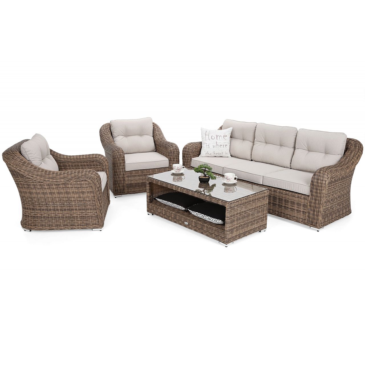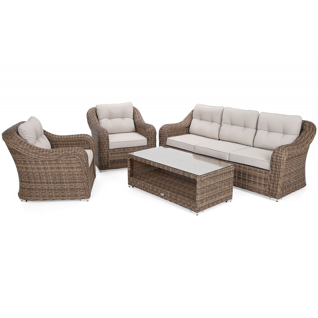 Зручне крісло, книга, кава чи лимонад і легкий подих літнього вітру на щоці. Вибираючи садові меблі Andros, ви гарантуєте собі такий полудень кожного теплого дня! Набір забезпечить комфортний відпочинок до 5 осіб. Комфорт забезпечать елегантні і м'які подушки на сидіннях і спинках двох крісел і довгого садового дивана. Вся конструкція виготовлена з техноротанга, тому вам не доведеться турбуватися про дощ, сонце чи бруд. Цей делікатно витканий матеріал насправді є міцним і легким для очищення (за допомогою води) матеріалом, який цінується в меблевій та садівничій промисловості. Каркас всього набору виготовлений з алюмінію - стійкого і міцного, з порошковим покриттям, що забезпечує стійкість до погодних умов.