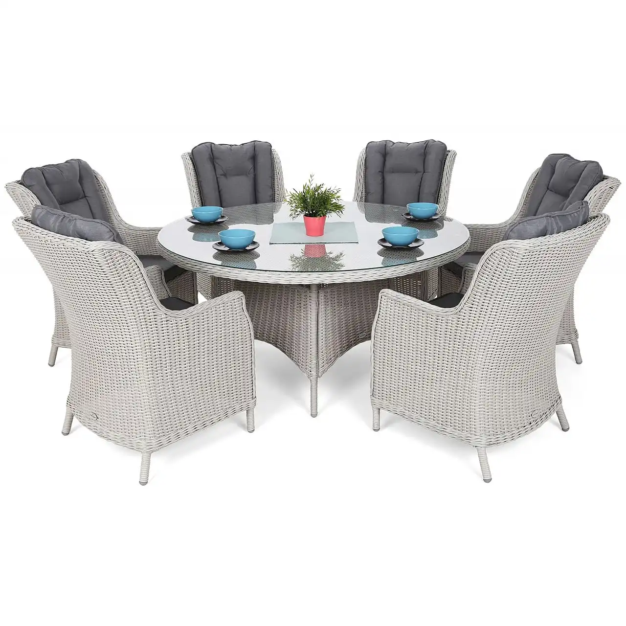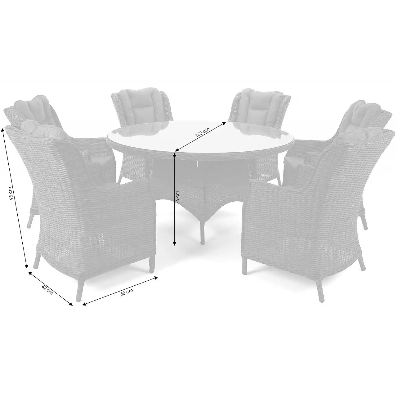 Садові меблі з колекції BRISTOL ROUND - це ексклюзивне техно-ротангове обладнання, яке стане надзвичайно ефектною прикрасою будь-якої елегантної тераси. Набір складається з круглого столу та 6 зручних крісел із вищими спинками, що забезпечує більший комфорт для сидіння високим людям. Пропонований комплект меблів чудово підійде як обідній гарнітур, адже комфорт користування меблями, а точніше прийому їжі просто вражає. Це ідеальне рішення для всіх, хто шукає комфорту в найкращому стилі.