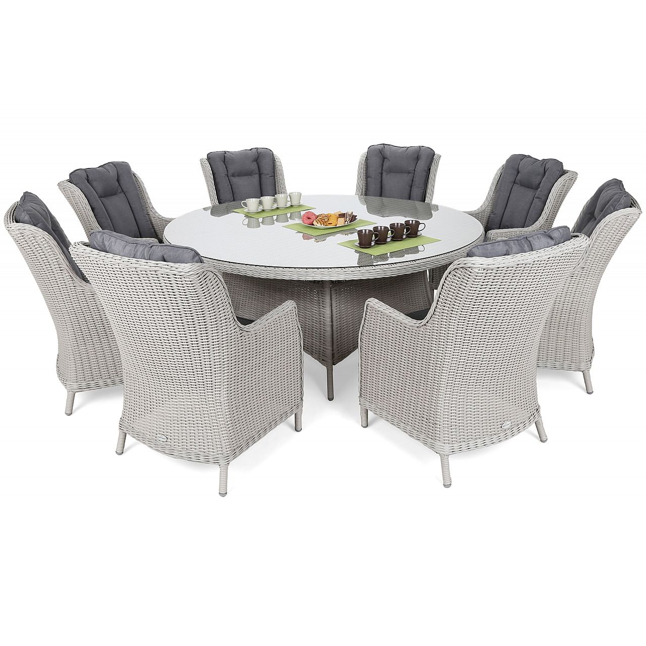 Садові меблі з колекції BRISTOL ROUND - це ексклюзивне техно-ротангове обладнання, яке стане надзвичайно ефектною прикрасою будь-якої елегантної тераси. Набір складається з круглого столу та 8 зручних крісел із вищими спинками, що забезпечує більший комфорт для сидіння високим людям. Пропонований комплект меблів чудово підійде як обідній гарнітур, адже комфорт користування меблями, а точніше прийому їжі просто вражає. Це ідеальне рішення для всіх, хто шукає комфорту в найкращому стилі.