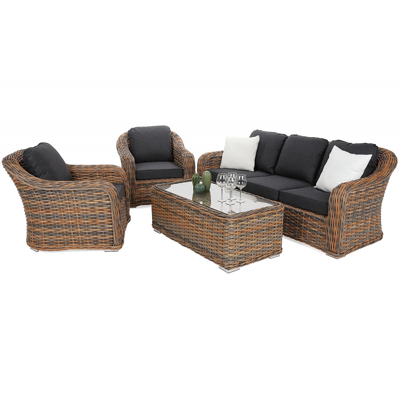 Набір садових меблів Foggia складається з дивана, двох крісел і столу. Завдяки цьому ви легко зможете облаштувати зону відпочинку в саду, на терасі або балконі. Це відмінний вибір для людей, які цінують високу якість і естетичність садових меблів.