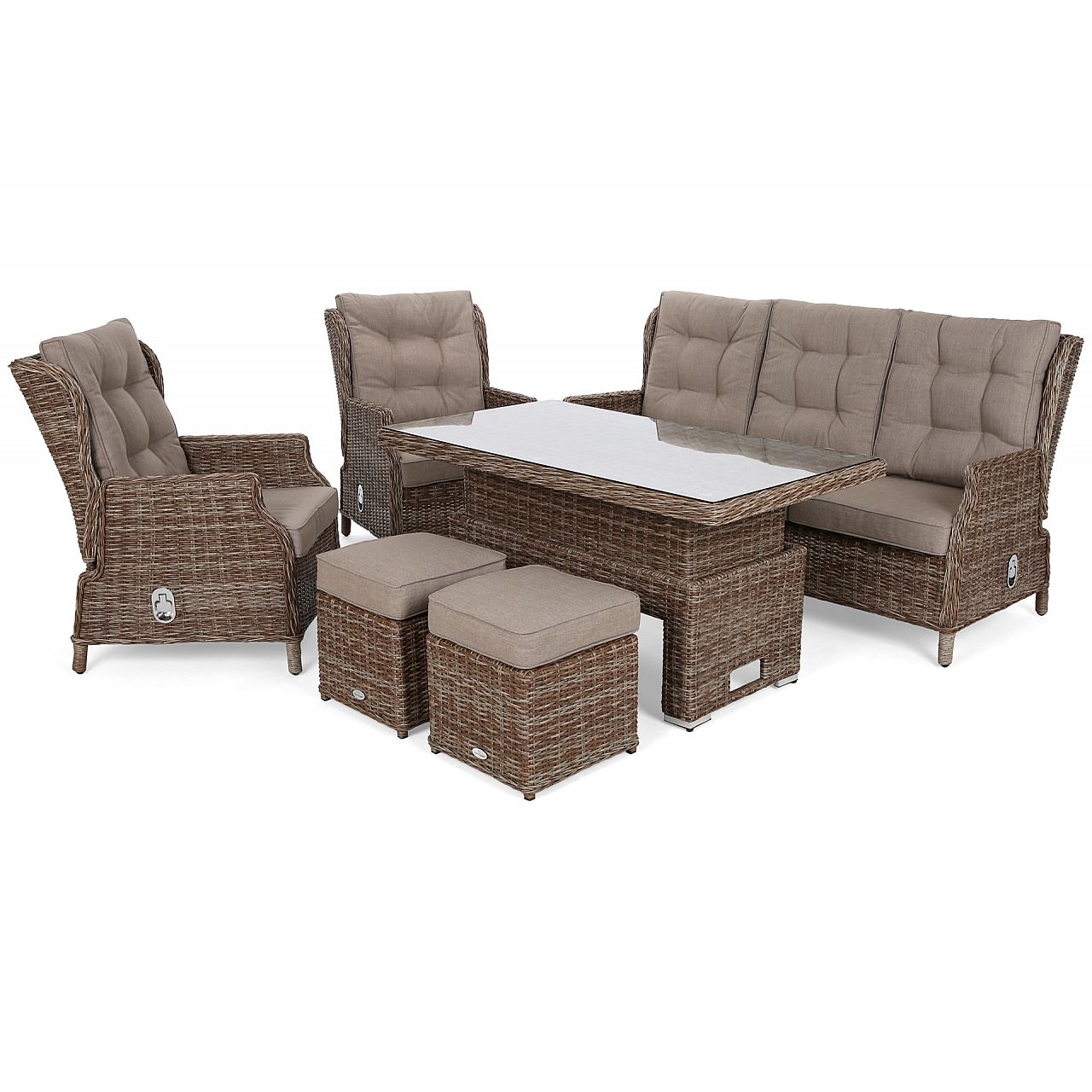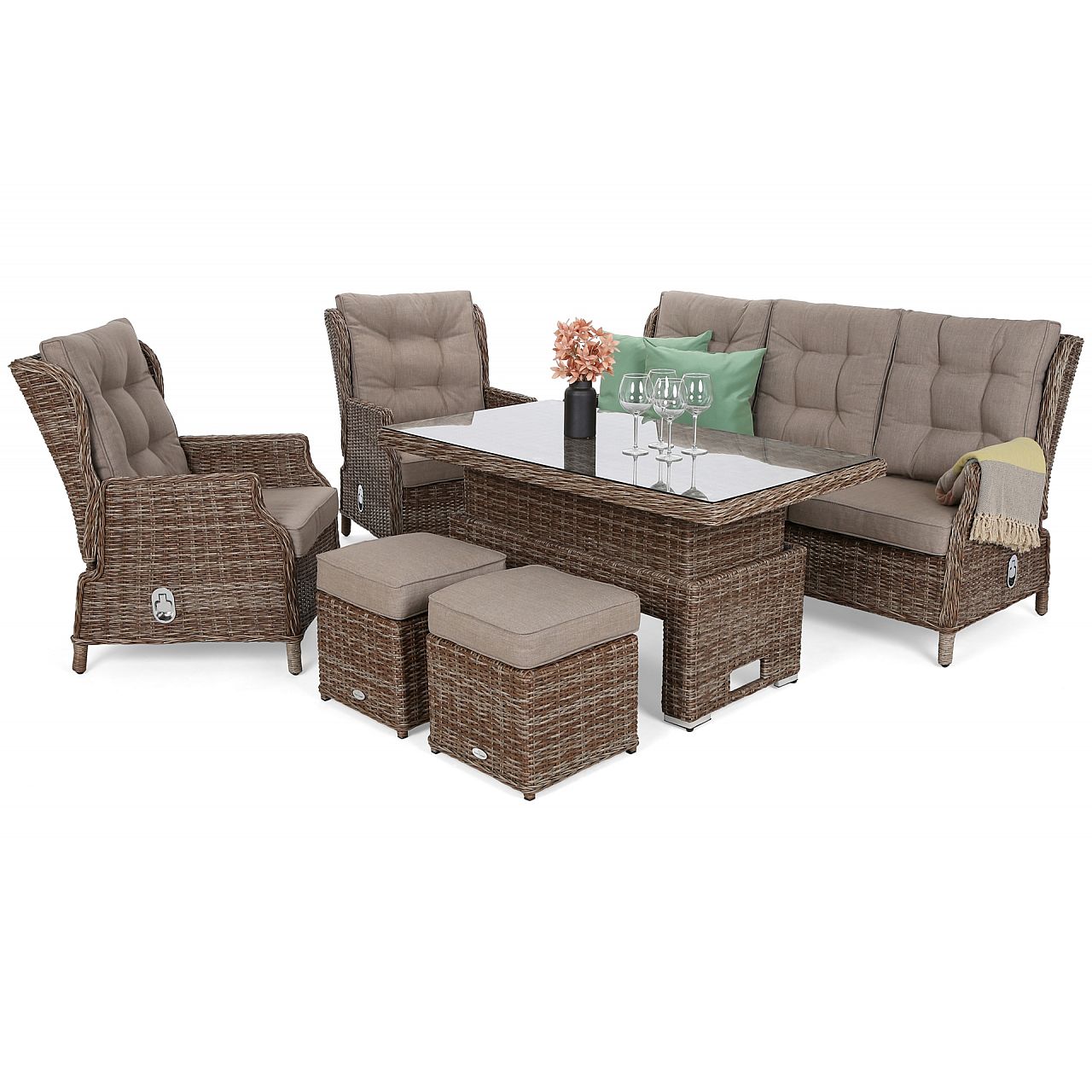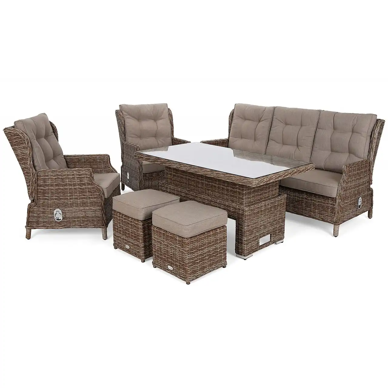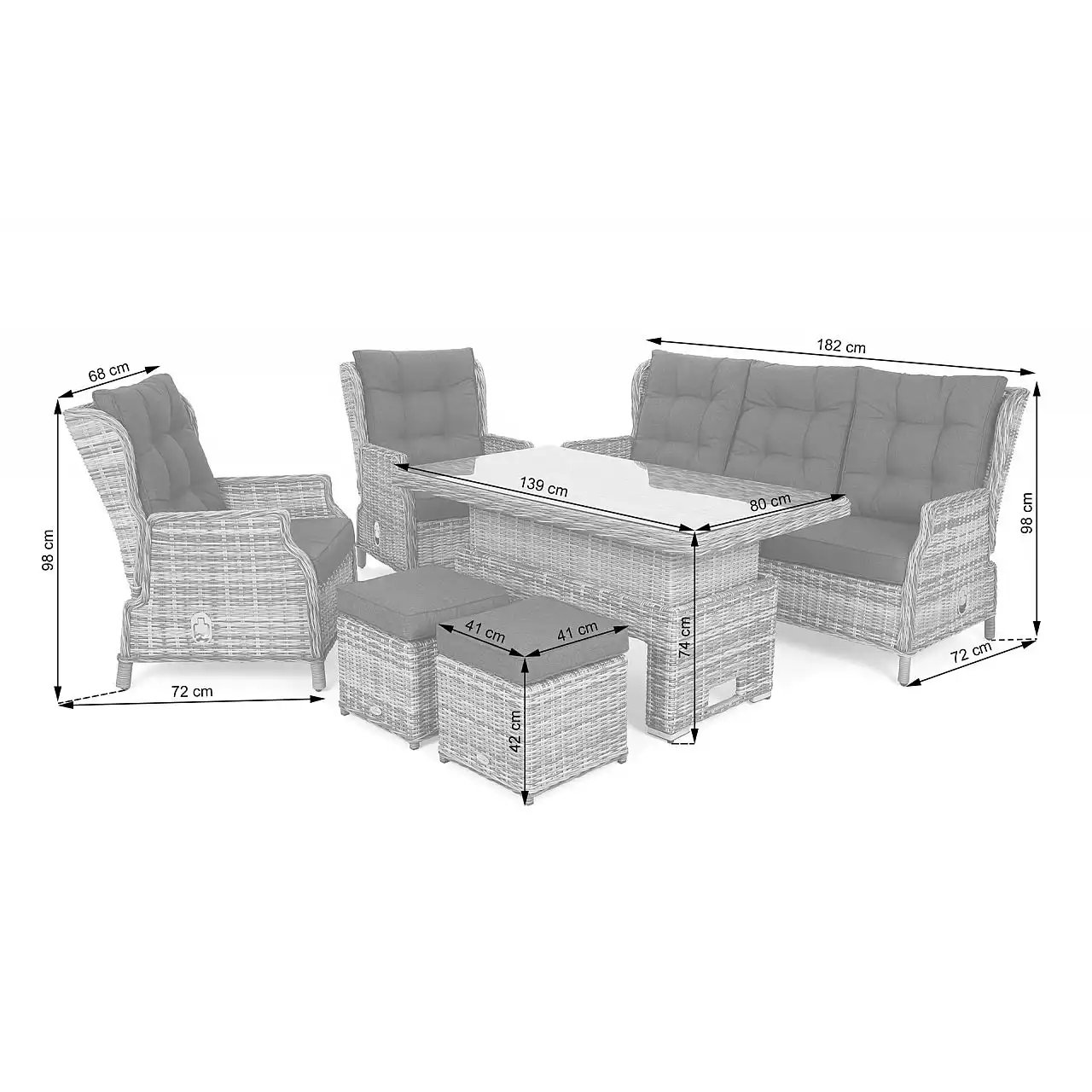 Меблі Trivento Plus виготовлені з високоякісного алюмінію та додатково пофарбовані порошковою фарбою. Така обробка не тільки підвищує естетичну цінність набору, але й захищає металеві елементи від корозії. Техноратанг ідеально доповнить цю основу. Міцний і сучасний матеріал не тільки красиво виглядає, але також легко чиститься і стійкий до погодних умов. Все це доповнюється зручними подушками в знімних чохлах.