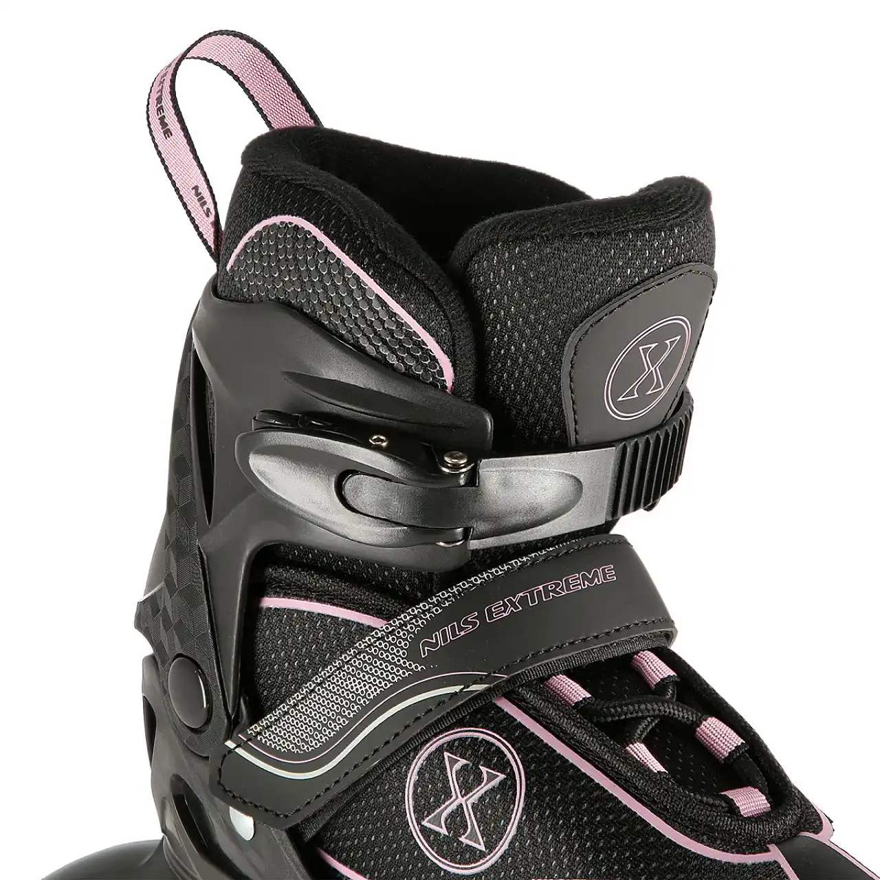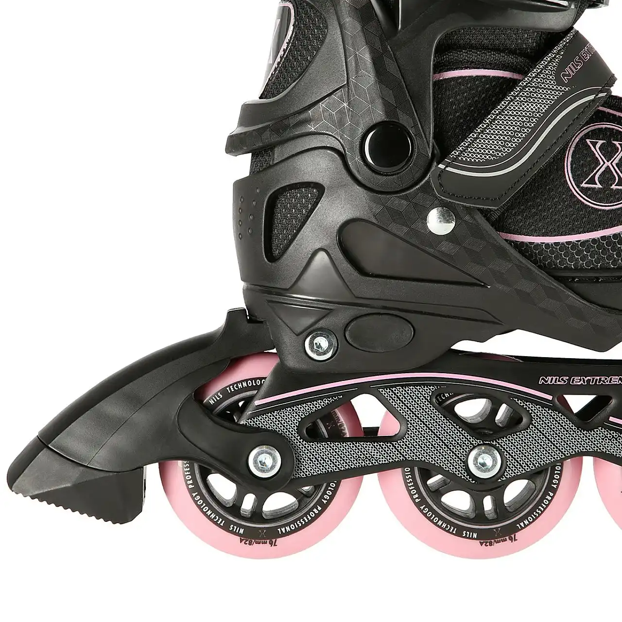 Застібка черевика за допомогою двосекційної пряжки, липучок і шнурівки забезпечує максимальну безпеку під час їзди, а гальма з найякіснішого, ударостійкого поліетилену забезпечують безпечну зупинку навіть на відносно високих швидкостях.