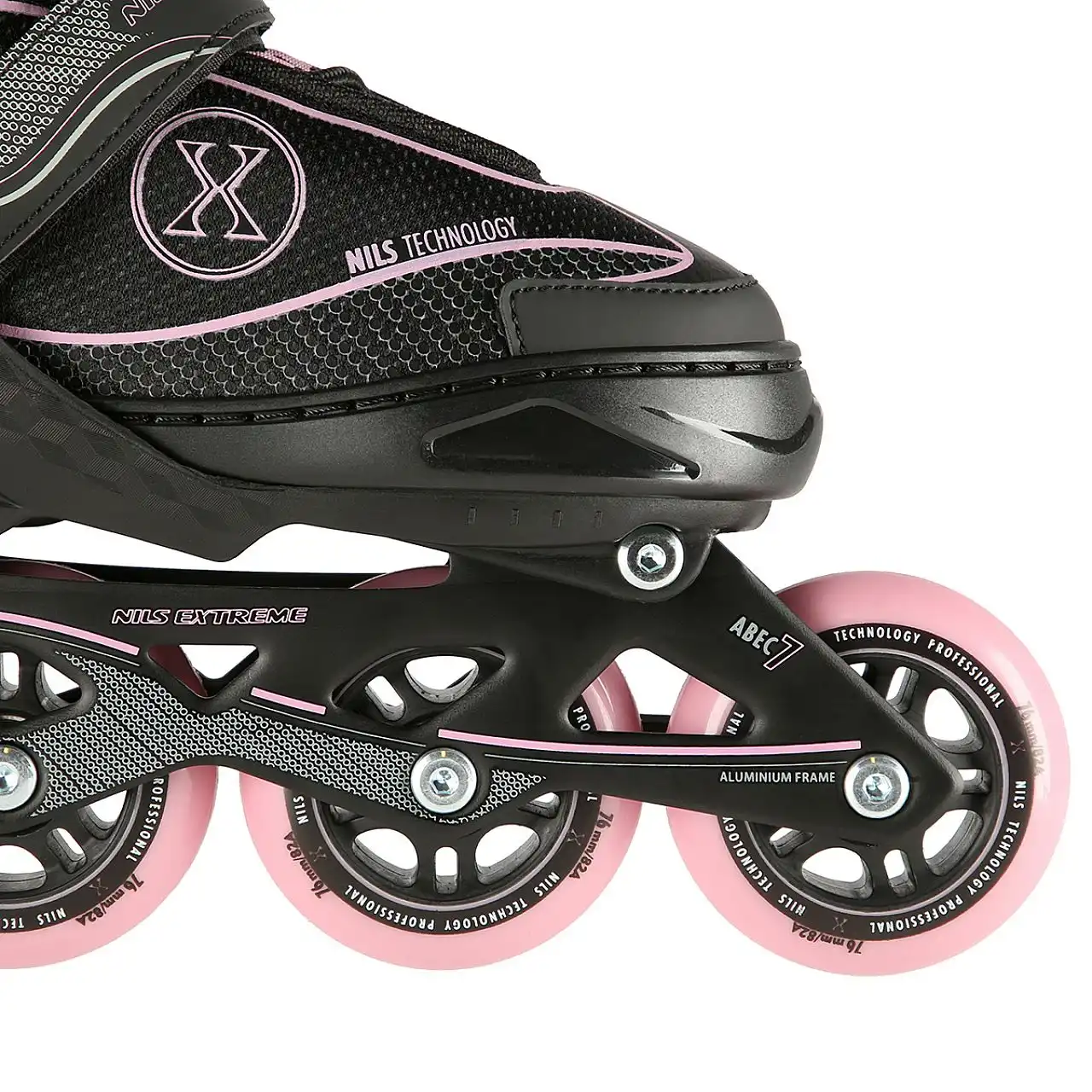 Ролик дуже легкий завдяки алюмінієвим полозам і основі взуття, яка виготовлена з високоякісного ПП. Крім того, м'які колеса гарантують хороше зчеплення з землею і добре поглинають всі вібрації, а підшипники ABEC7 забезпечують високу якість зчеплення.