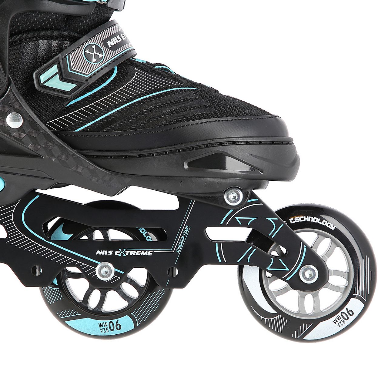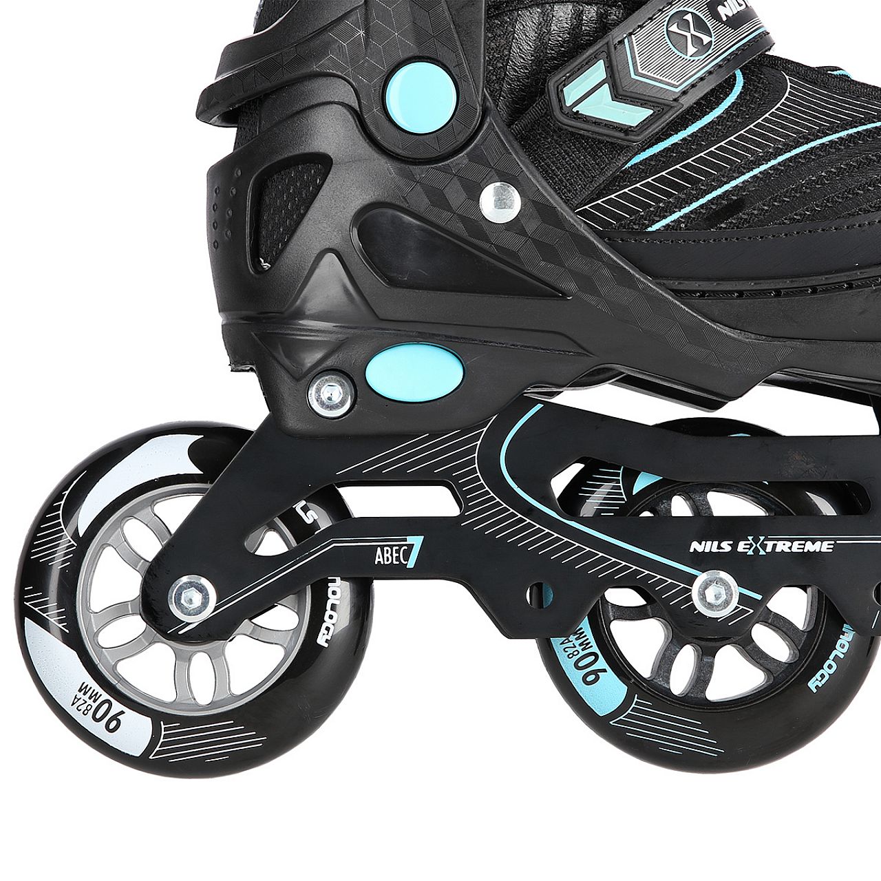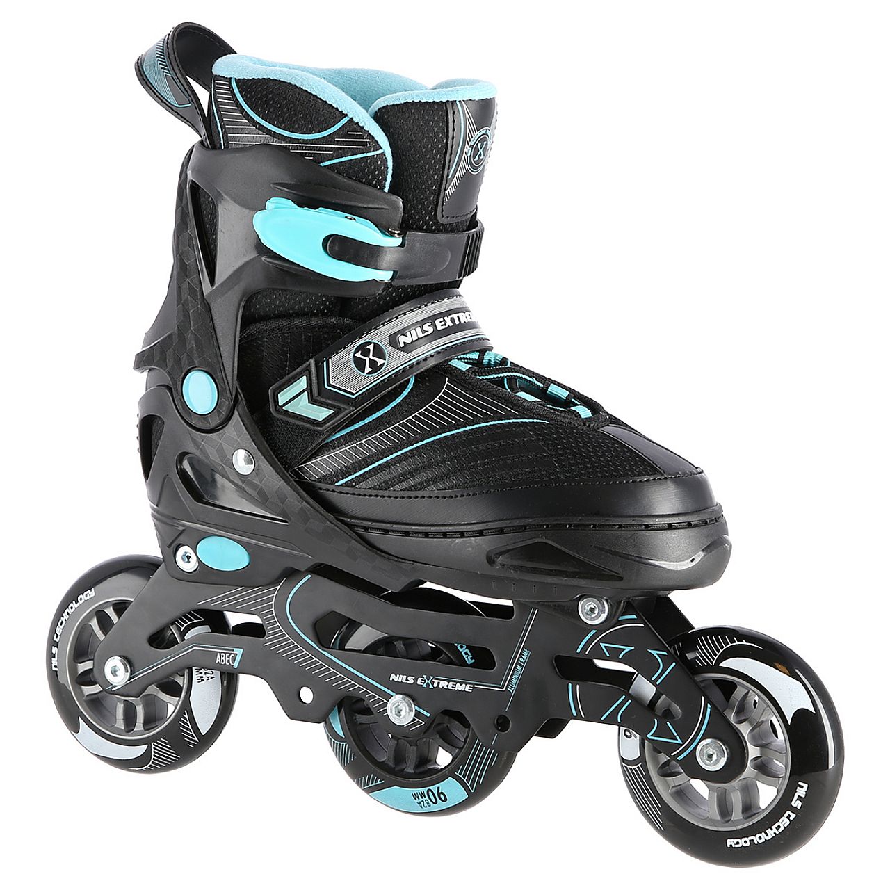 Використовуючи просту систему регулювання, ви можете легко і швидко підлаштувати розмір під ногу користувача. Оксамит, піна високої щільності, сітка та система вентиляції безпосередньо підвищують комфорт користувача. Ролик оснащений спеціальними алюмінієвими полозами. У свою чергу, великі колеса та підшипники ABEC 7 дозволяють знизити опір коченню. Якісні підшипники, особливо колеса з дуже великим діаметром, гарантують дуже швидку їзду.
