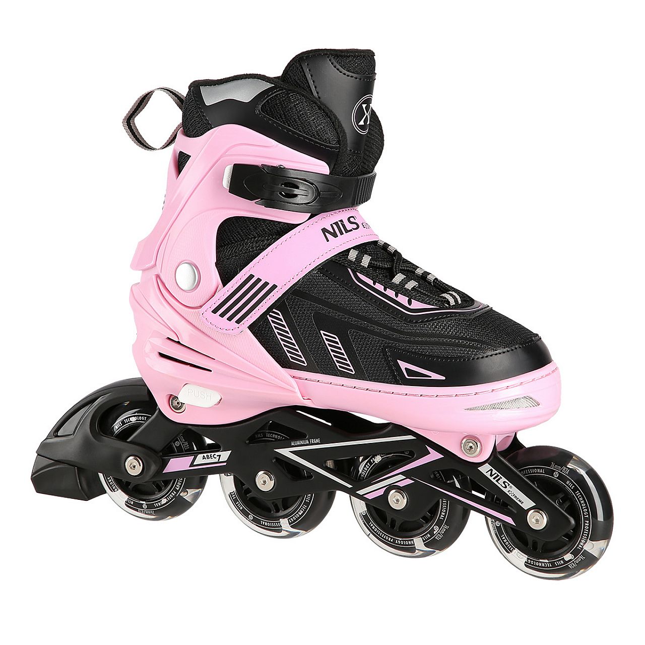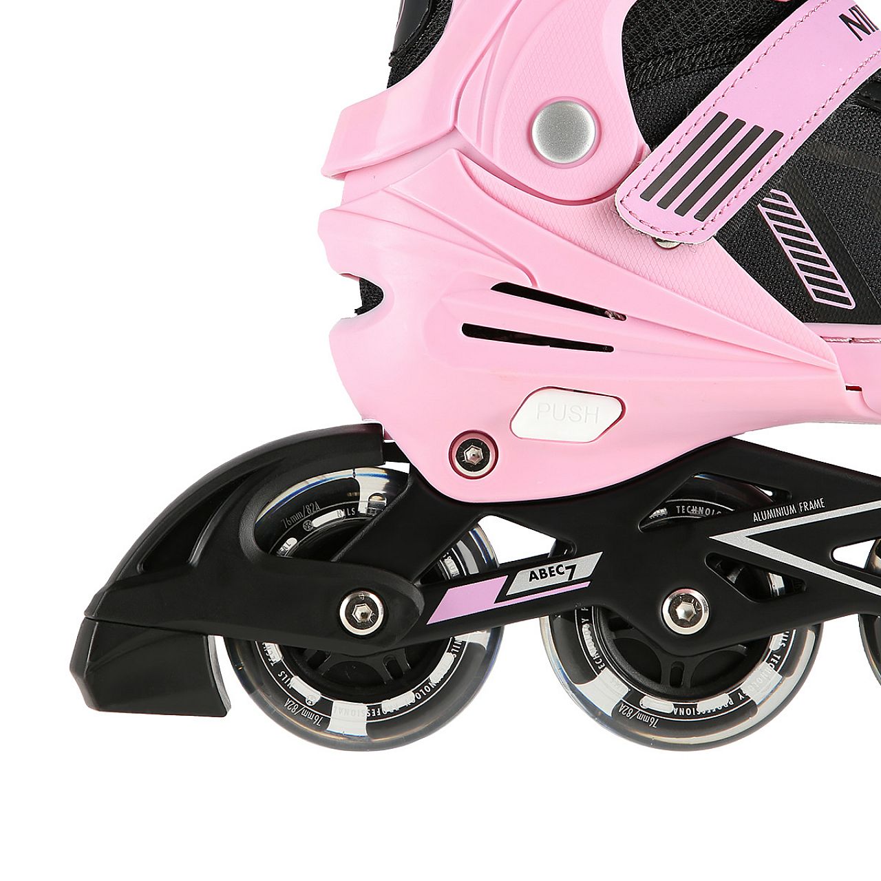 Легкий і міцний черевик гарантує безпеку під час їзди, а система вентиляції взуття безпосередньо підвищує комфорт користувача. Модель оснащена чотириступінчастою регулюванням розміру, завдяки чому можна легко і швидко підігнати розмір взуття під ногу користувача. Варто додати, що модель NJ19803A має алюмінієві полози, а підшипники класу ABEC7 дозволяють знизити опір коченню, тобто швидше їхати. Заднє гальмо забезпечує безпеку під час використання.