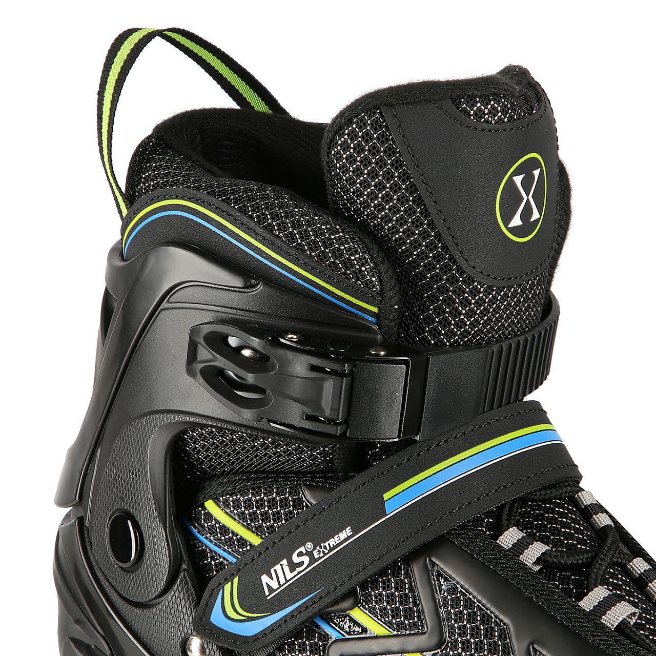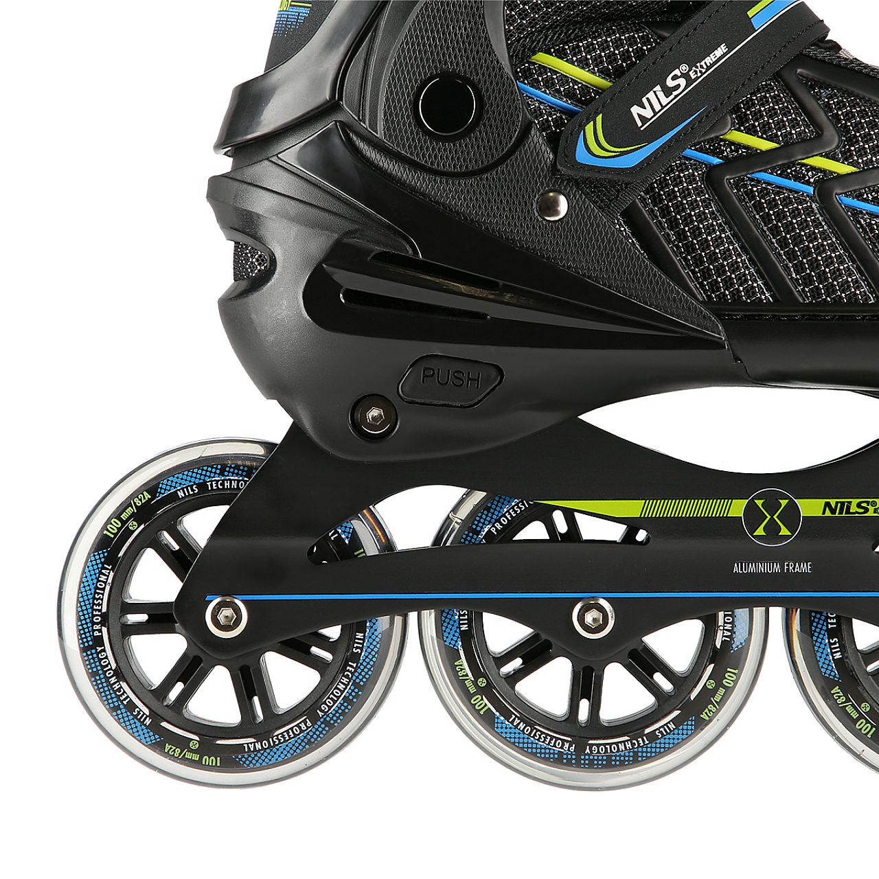 М'які колеса гарантують хороше зчеплення з землею та добре поглинають усі коливання. Завдяки великому діаметру також можна досягти високих швидкостей. Застібка взуття за допомогою двосекційної пряжки, липучок і шнурків забезпечує максимальну безпеку під час катання.