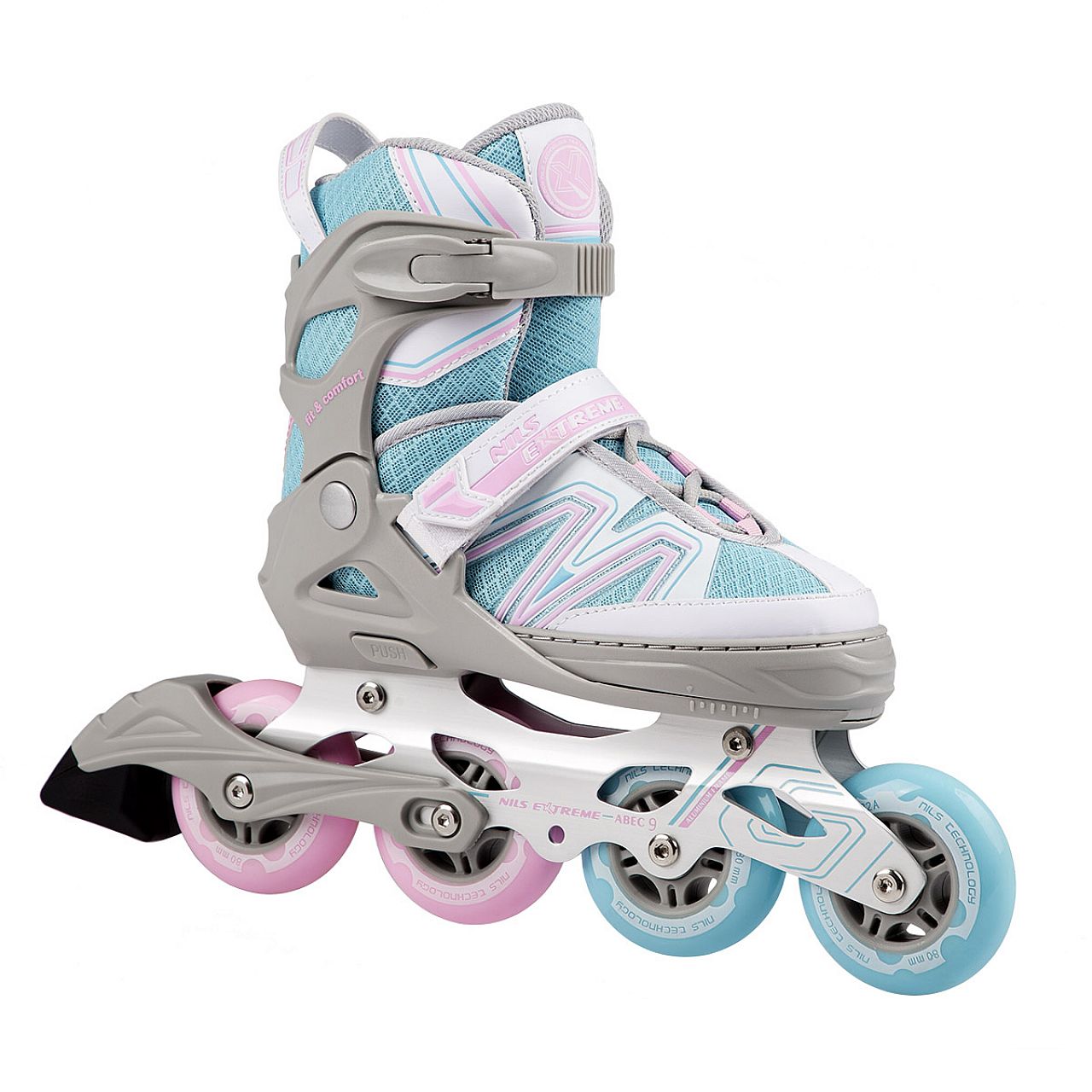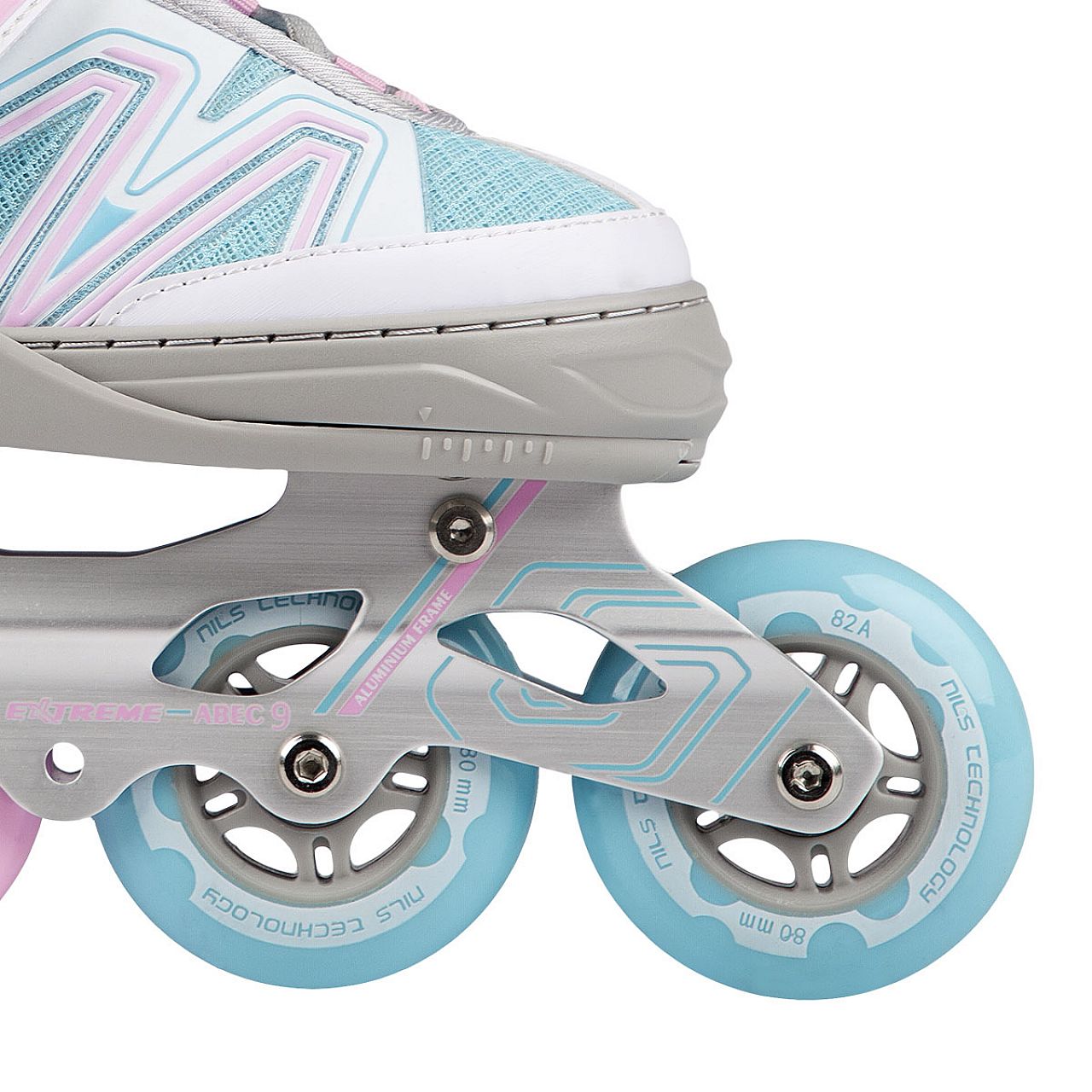 М'які колеса гарантують хороше зчеплення з землею та добре поглинають усі коливання. Додатковою перевагою є те, що ви можете встановити 3 колеса діаметром 100 мм, що гарантуватиме ще більш швидку їзду. Застібка черевика за допомогою двосекційної пряжки, липучок і шнурівки забезпечує максимальну безпеку під час їзди, а гальма з найякіснішого, ударостійкого поліетилену забезпечують безпечну зупинку навіть на відносно високих швидкостях.