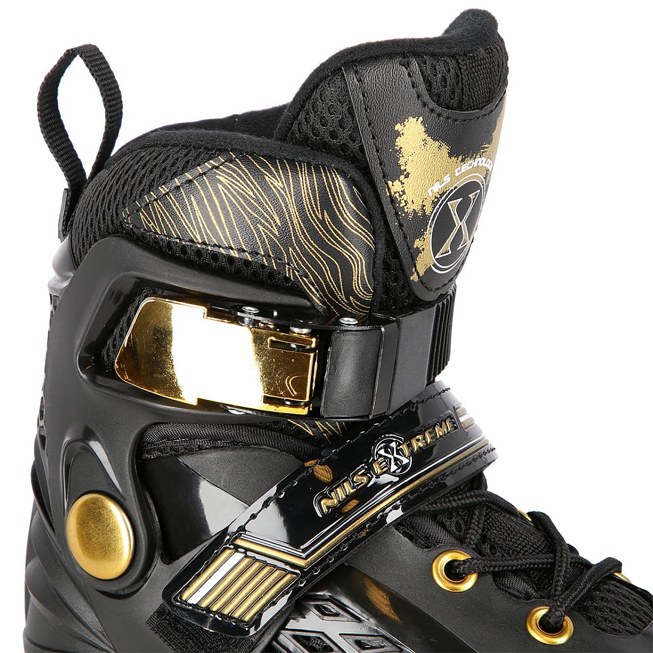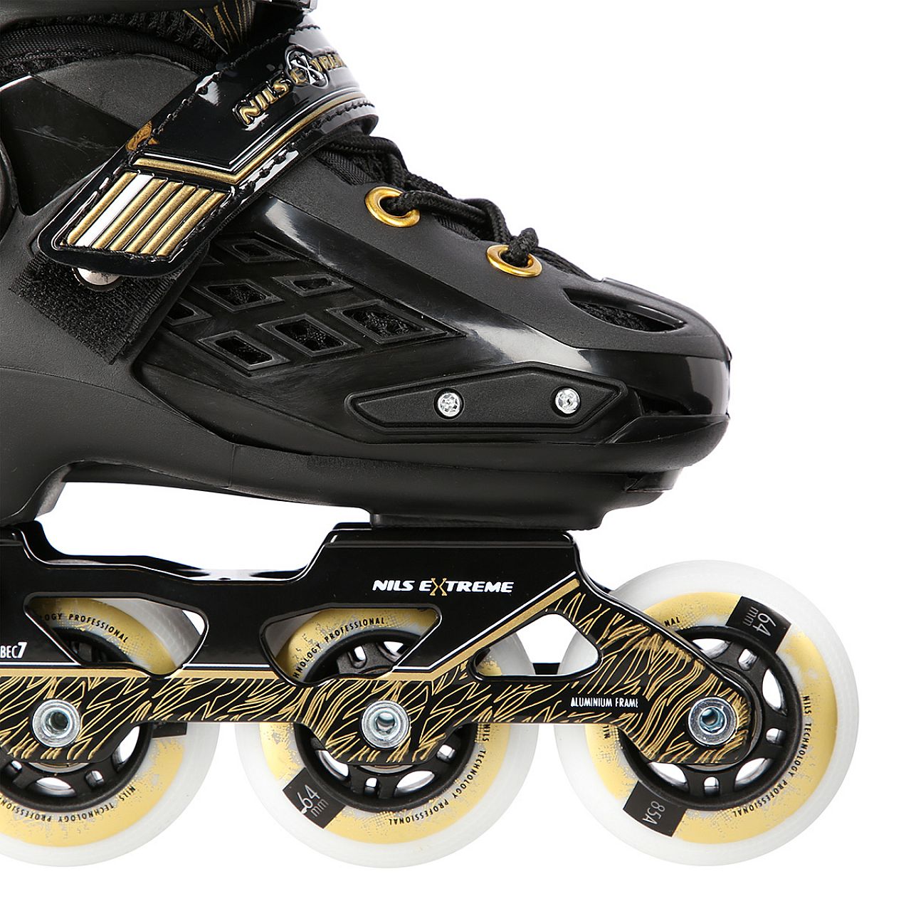 М'які колеса гарантують хороше зчеплення з землею та добре поглинають усі коливання. Підшипники класу ABEC7 забезпечують високу якість тяги. Застібка взуття за допомогою двосекційної пряжки, липучок і шнурків забезпечує максимальну безпеку під час катання. Гальмо з високоякісного, ударостійкого ПП забезпечить безпечну зупинку навіть на відносно високих швидкостях.