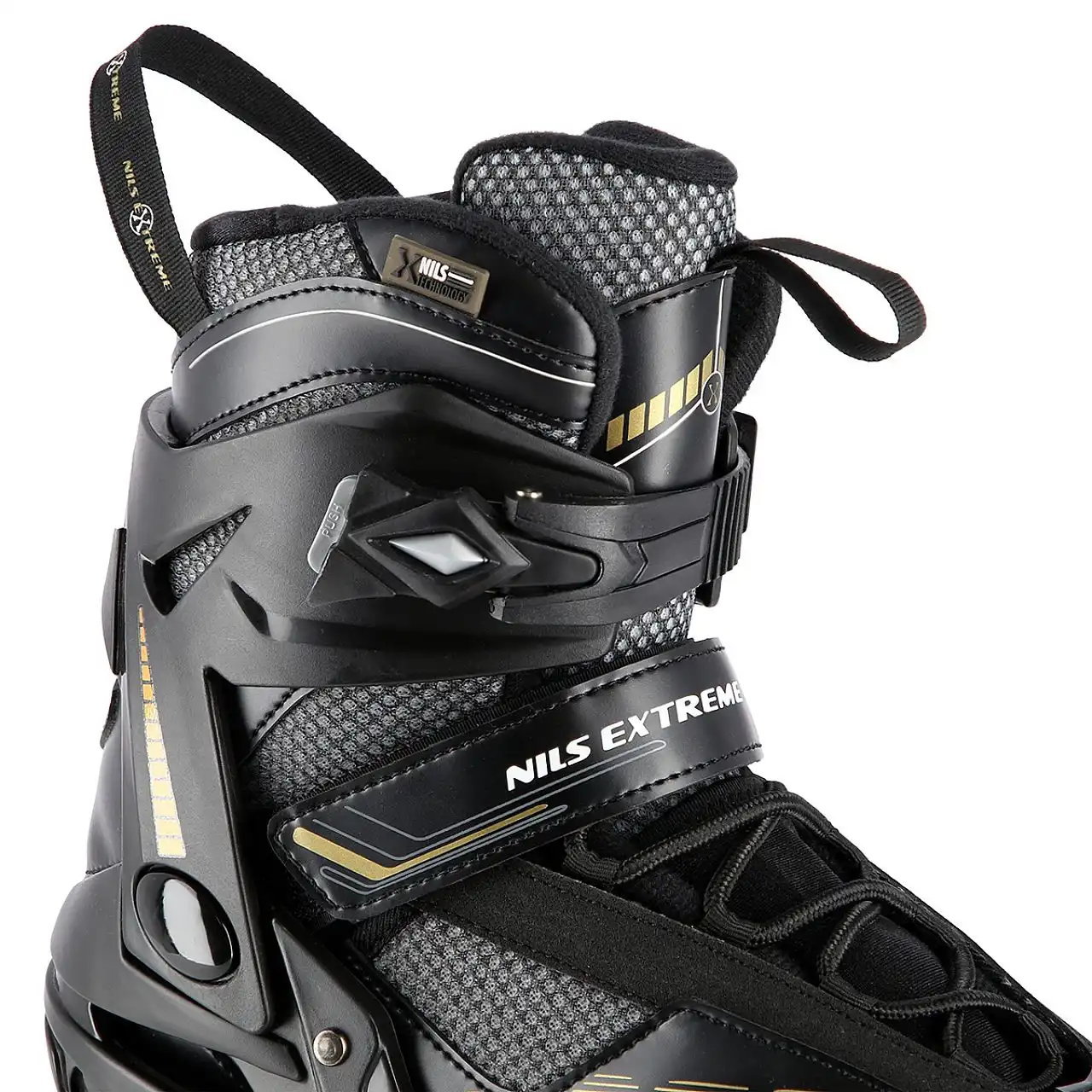 Застібка черевика за допомогою двосекційної пряжки, липучок і шнурівки забезпечує максимальну безпеку під час їзди, а гальма з найякіснішого, ударостійкого поліетилену забезпечують безпечну зупинку навіть на відносно високих швидкостях.
