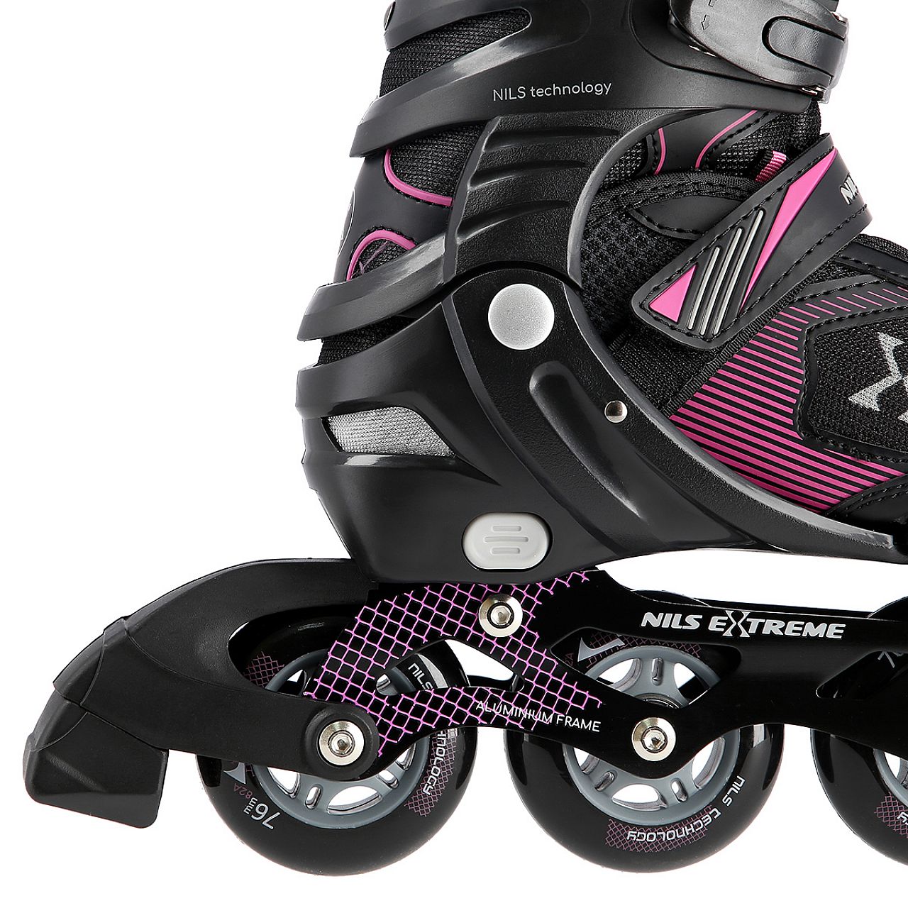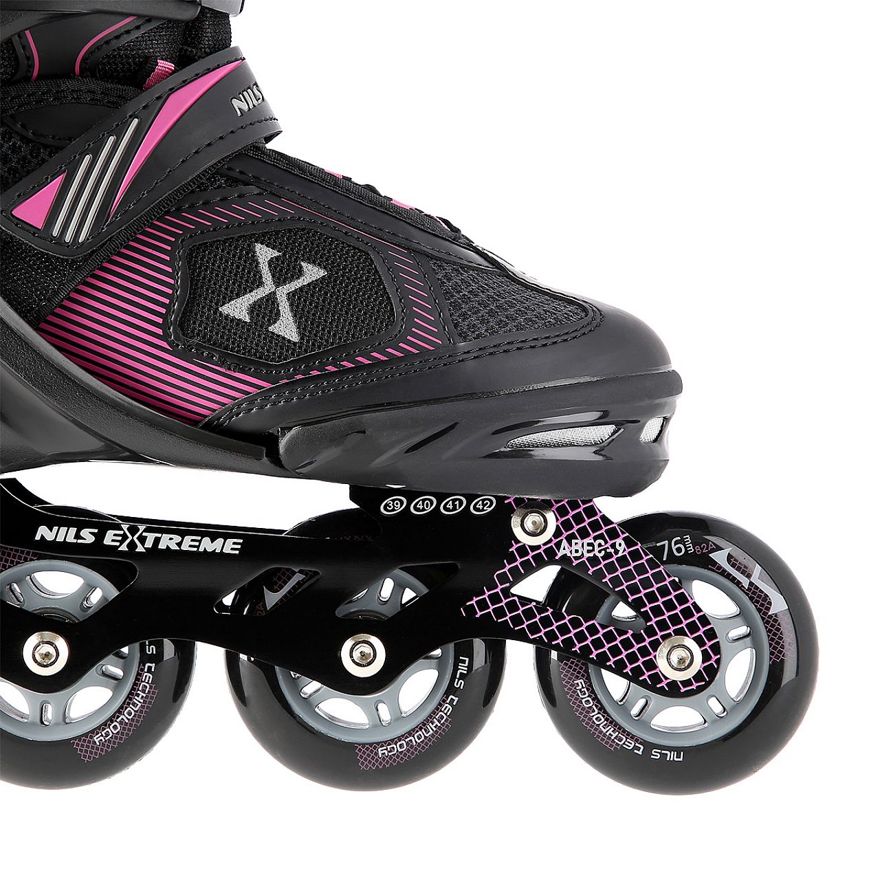 М'які колеса гарантують хороше зчеплення з землею та добре поглинають усі коливання. Застібка черевика за допомогою двосекційної пряжки, липучок і шнурівки забезпечує максимальну безпеку під час їзди, а гальма з найякіснішого, ударостійкого поліетилену забезпечують безпечну зупинку навіть на відносно високих швидкостях.