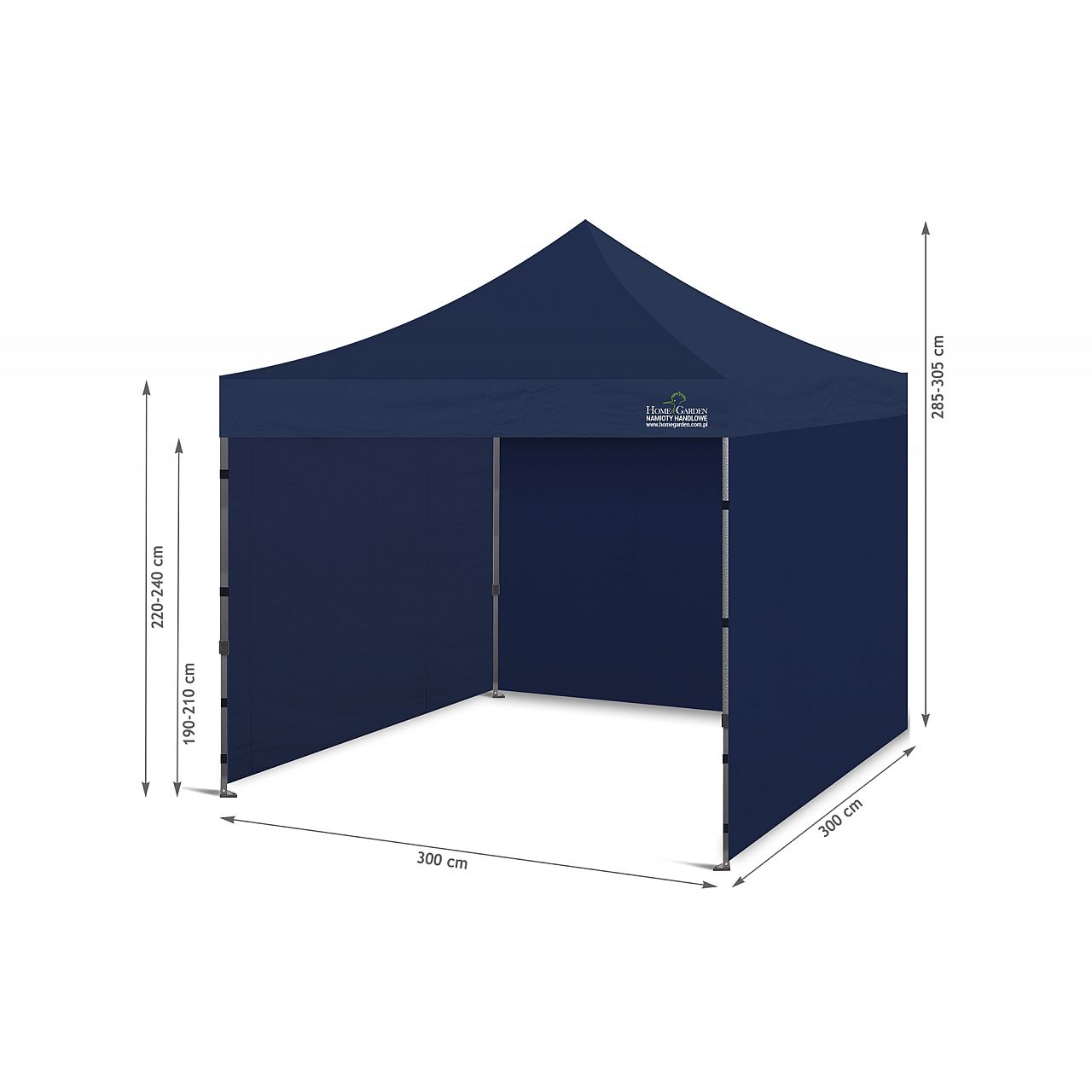 Експрес- торговий намет 300 x 300 см. Намет підходить для торгівлі та громадського харчування як дах на виставках, ярмарках, захист від сонця та дощу, скрізь, де нам потрібно покрити велику площу за короткий час. Конструкція каркаса дозволяє швидко зібрати намет за лічені хвилини. Каркас виготовлений з металевих профілів, пофарбованих високоякісною порошковою фарбою. Профілі, зібрані за допомогою міцних з'єднувачів ( 5-річна гарантія на з'єднувачі), оснащені системою легкого складання рами (ножицеподібна конструкція). Дах виготовлений з 300-грамового поліестеру, а стінки з поліестеру оснащені блискавкою, яка дозволяє з'єднувати їх між собою. Весь чохол намету прогумований, а шви вулканізовані, що гарантує 100% водонепроникність намету.
