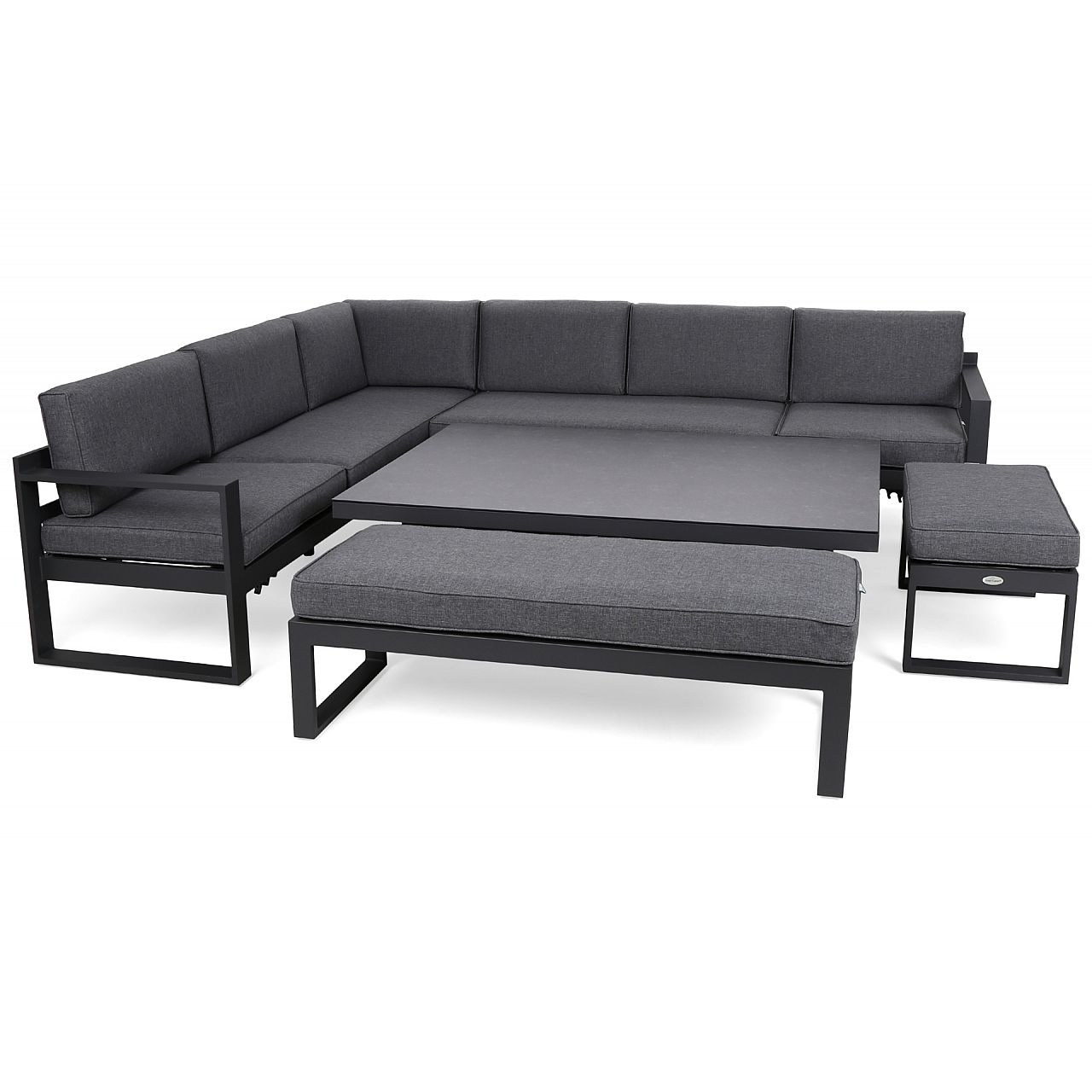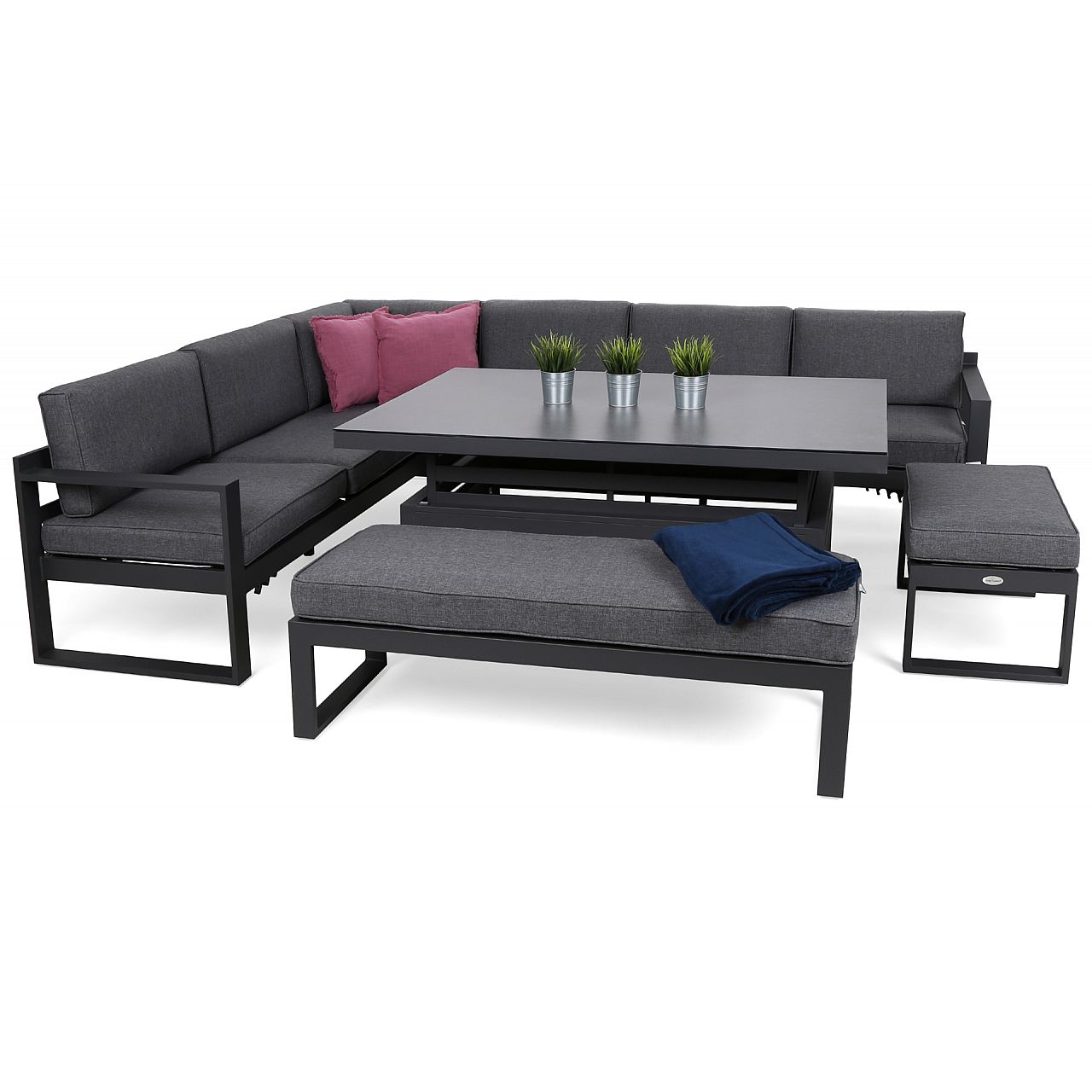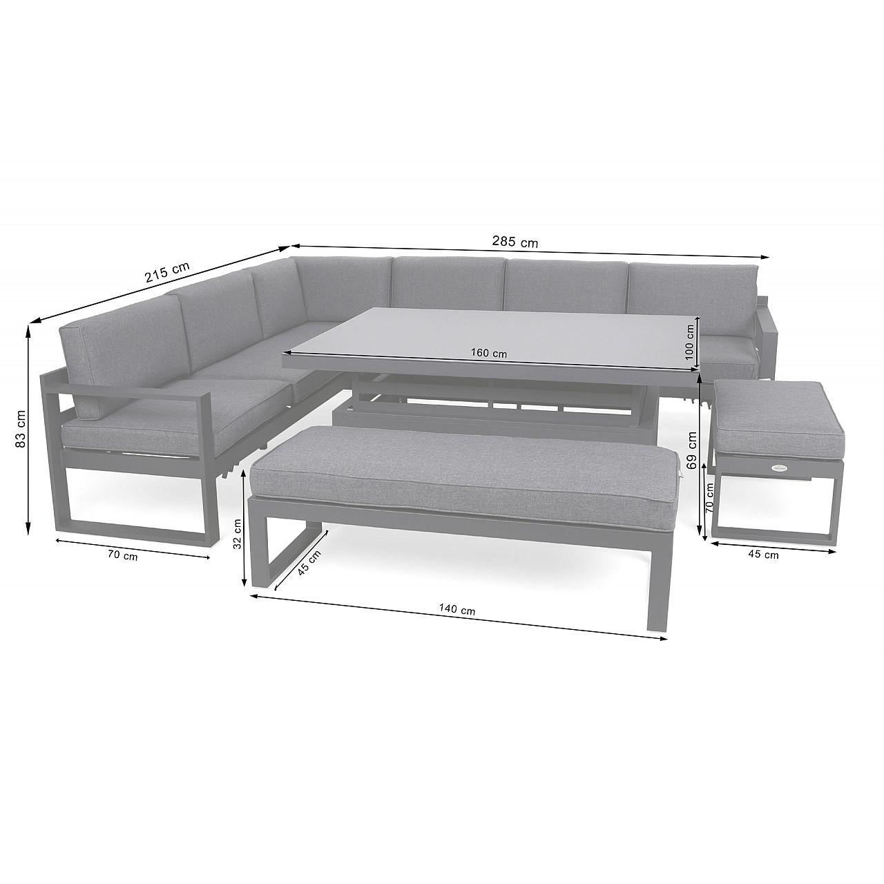 Якщо ви шукаєте оригінальні та функціональні садові меблі, які здивують вас своїм зовнішнім виглядом і спонукатимуть до відпочинку на природі, кутові алюмінієві садові меблі Naapol Grey / Grey Melange — ідеальний вибір для вас.