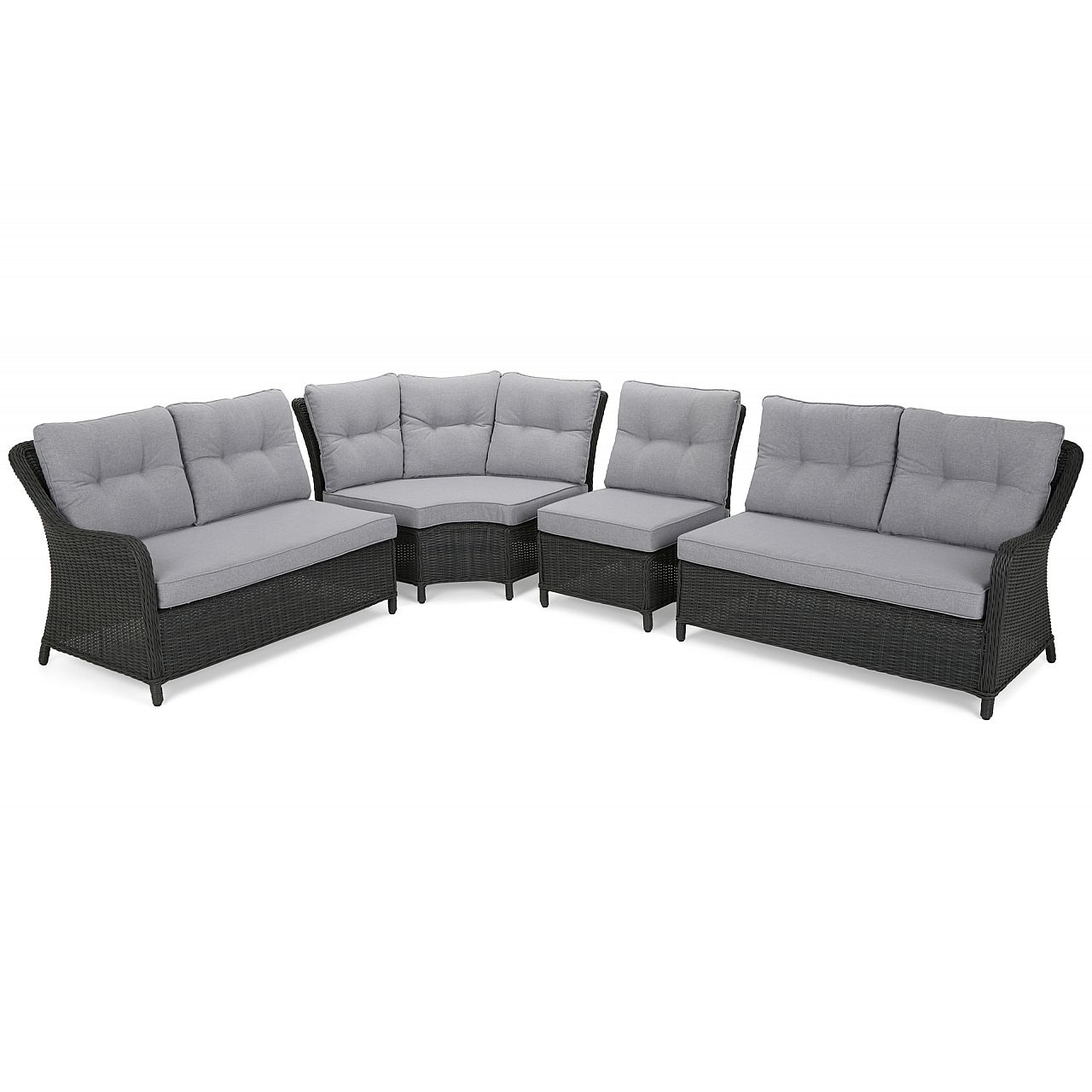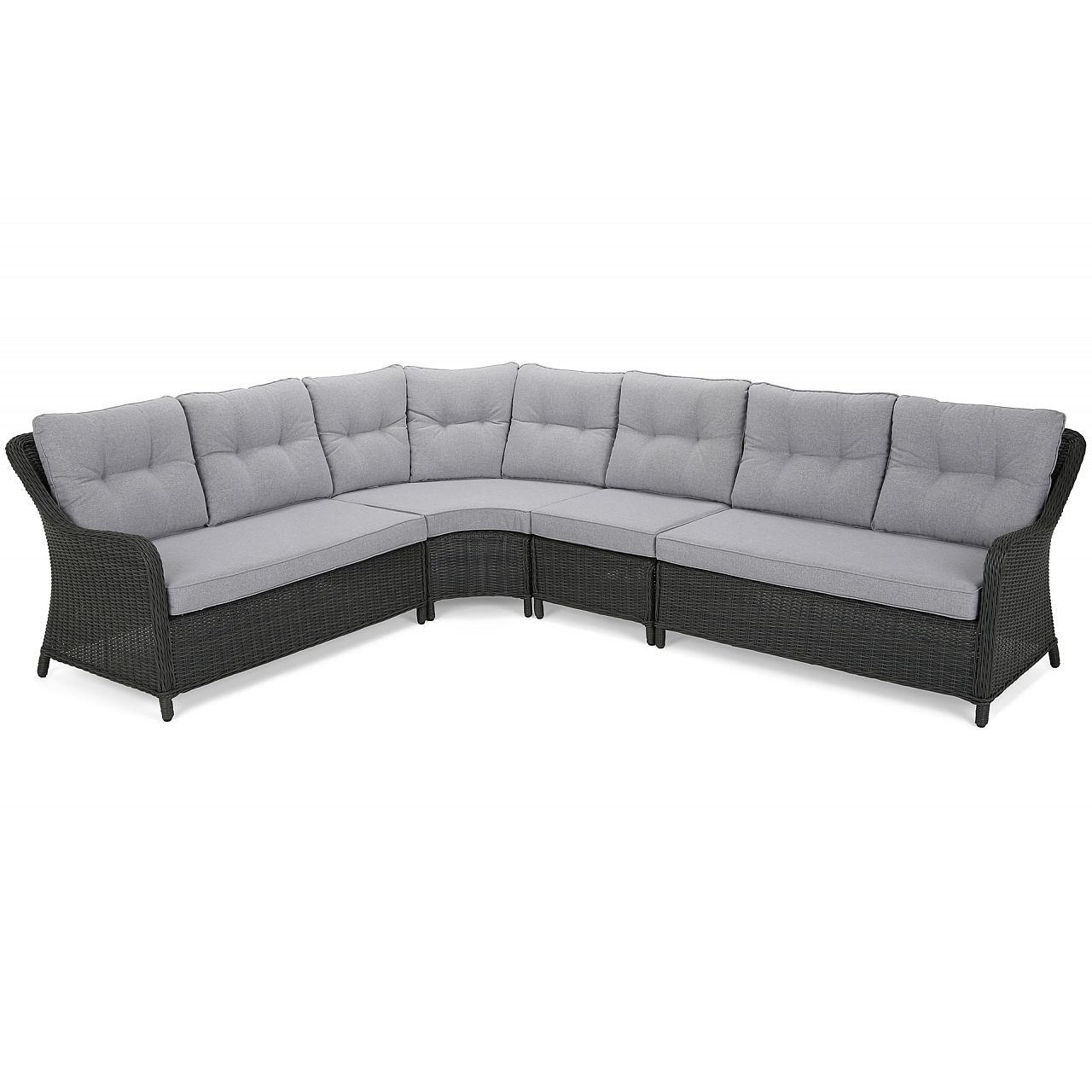 Windsor — чудовий вибір, якщо ви плануєте вечірку в саду для більшої кількості людей. Кутовий диван оснащений зручними великими подушками для сидіння та 8 меншими м’якими подушками для спинки. Кожен з них має знімний чохол, який можна прати. Такі ж подушки можна знайти на кожному з 4 крісел. Завдяки їм ми зможемо зручно розташуватися і насолодитися літнім сонцем з книгою чи холодним напоєм. Незважаючи на те, що весь комплект Windsor виглядає дуже легким і ніжним, його стійкість забезпечує міцний і міцний алюмінієвий каркас, прихований під елегантним техноротангом.