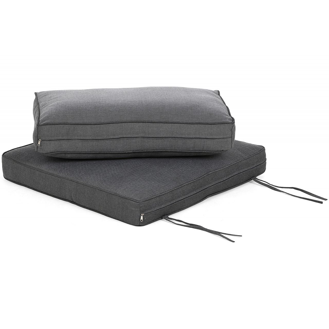 Темно-сірий алюмінієвий кутовий диван Nicea гарантує комфорт під час відпочинку завдяки подушкам, розташованим як на сидінні, так і на спинці. Стіл оптимального розміру вміщуватиме напої та закуски для всієї родини. Додаткове місце для книги або тарілки розташоване по обидва боки кутового дивана, куди подушки не дотягуються.