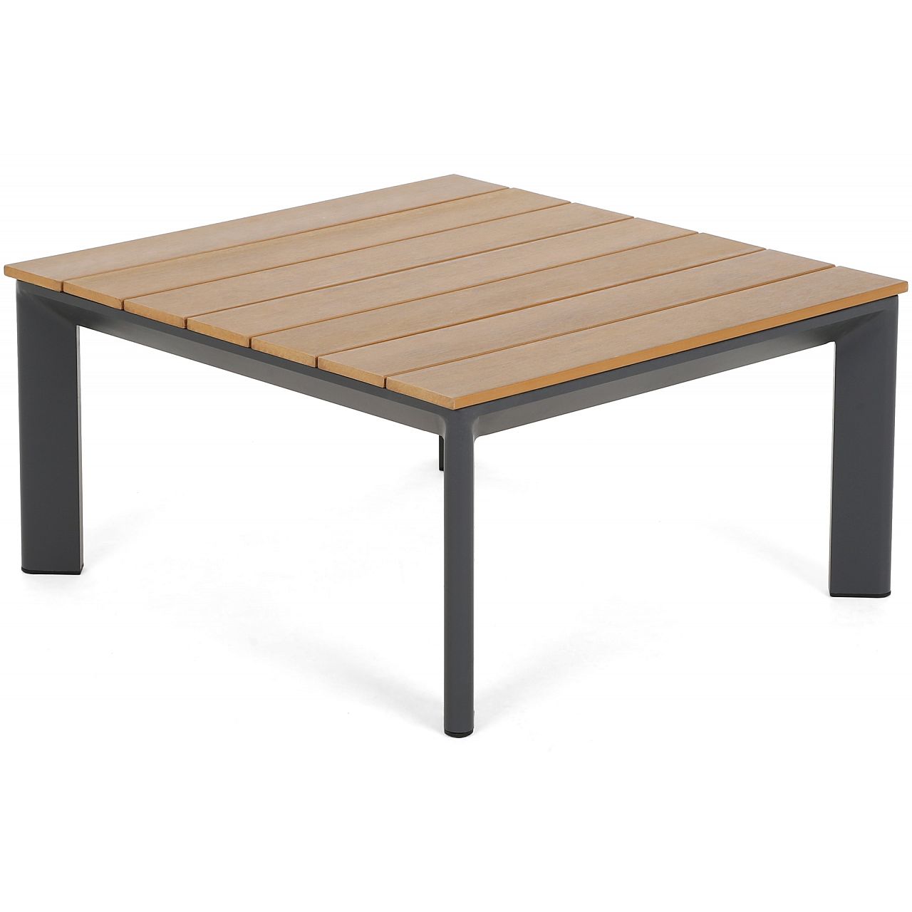 Кутовий диван зі столом – ідеальний комплект для відпочинку в саду. Меблі вирізняються своєю довговічністю та позачасовим дизайном. Поєднання темно-сірих подушок з деревним відтінком пасує до сучасних, класичних та бохо-аранжувань. Комплект забезпечує комфортні місця для чотирьох осіб.