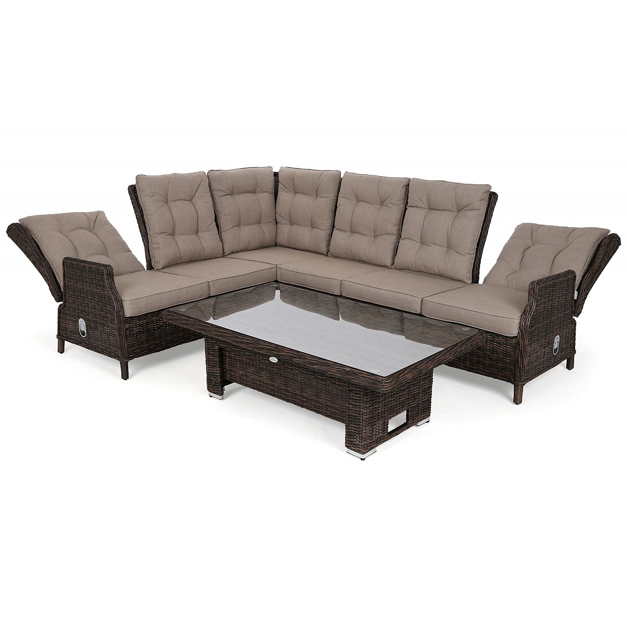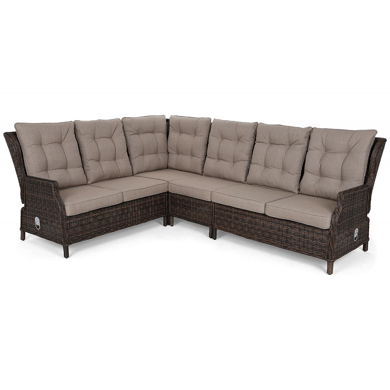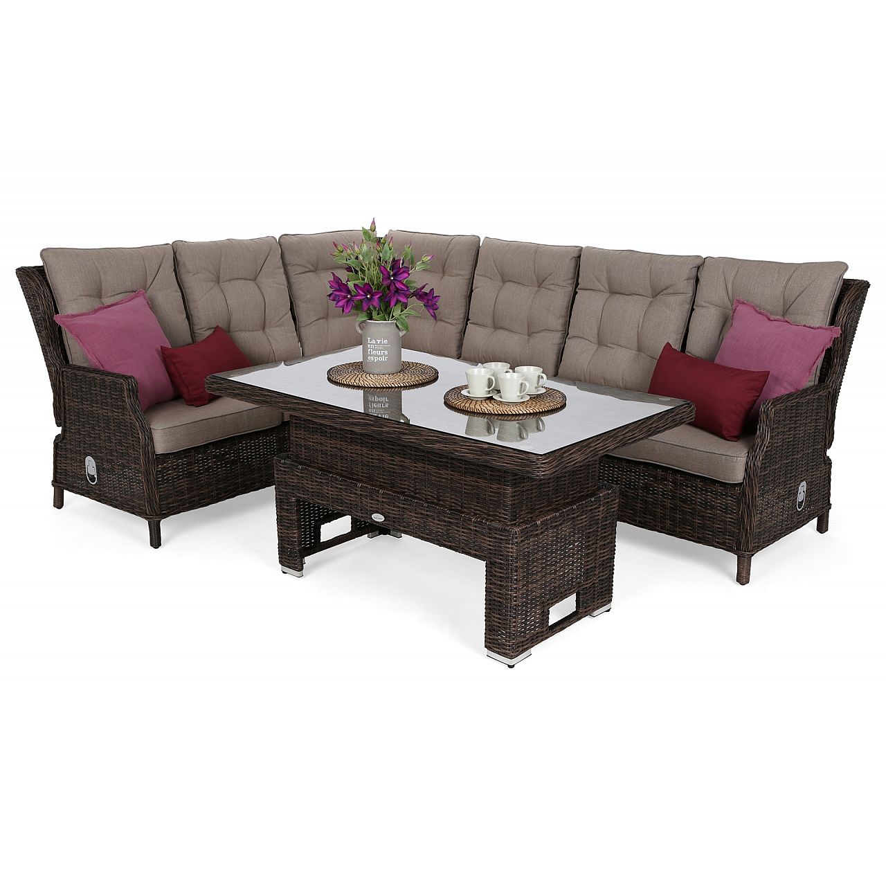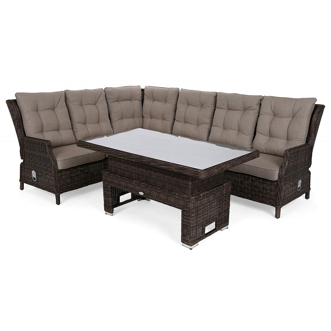 Набір Trivento виглядає надзвичайно елегантно. Його розмір, свобода складання окремих елементів і великий регульований стіл дозволять кожному комфортно розташуватися під час проведення часу в саду або на терасі. А ручний техноротанг в поєднанні з модним дизайном стане прикрасою простору, в якому ви розмістите меблі.