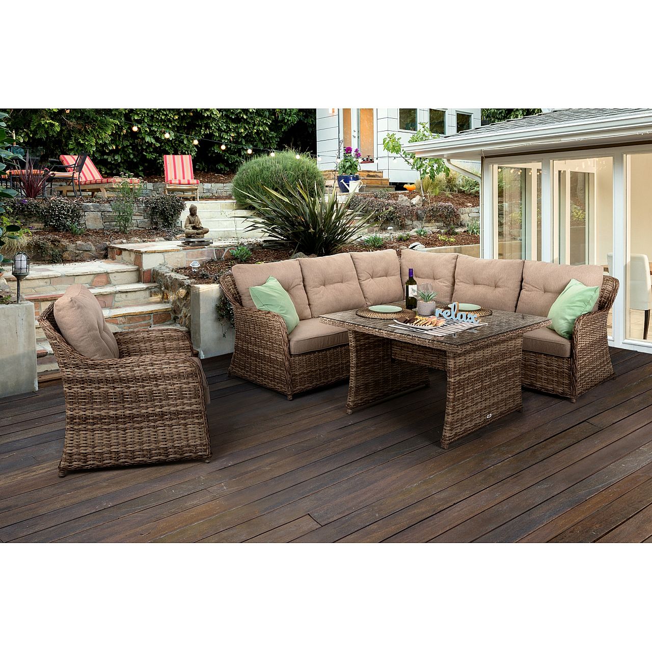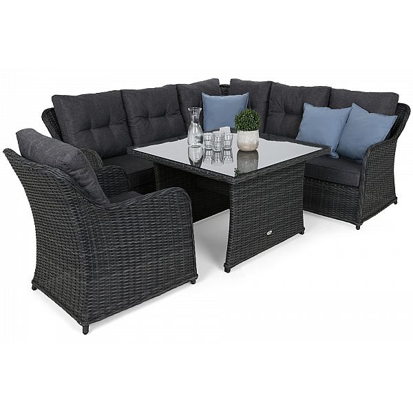 Сірий кутовий набір садових меблів Bergamo — ідеальна пропозиція для людей, які цінують поєднання елегантності та функціональності. Ідеально підійшовши для саду, тераси або балкона, комплект створить затишний куточок для відпочинку, де ви зможете насолоджуватися відпочинком на свіжому повітрі. Кутовий диван, стіл і крісло виглядають надзвичайно елегантно, додаючи стилю та класу будь-якому зовнішньому простору.
