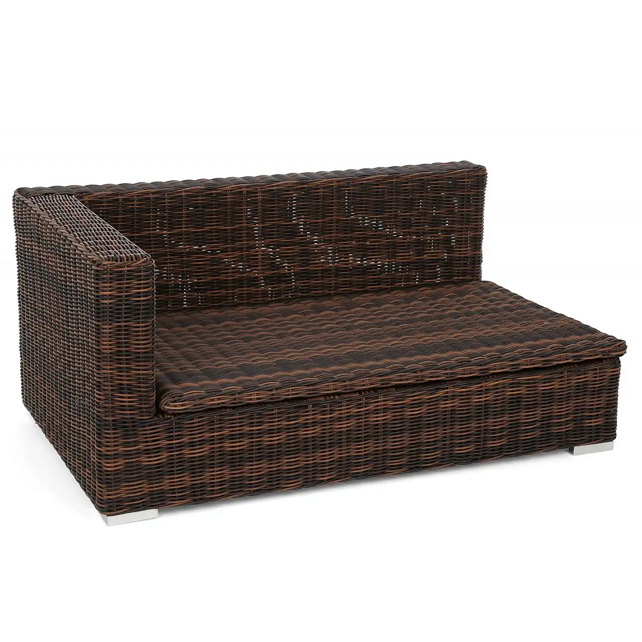 Пориньте в розкіш і комфорт з нашим кутовим набором садових меблів з техноратангу Livorno Rust Brown / Brown Melange. Цей ексклюзивний комплект, що складається з кутового дивана, розділеного на сегменти, крісла, пуфа та стильного столика, є ідеальним поєднанням функціональності та естетики для вашого саду.