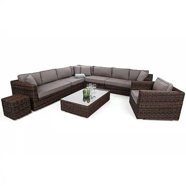 Livorno Rust Brown / Brown Melange - це не тільки садові меблі, це вираження розкоші та елегантності. Хоча це може бути трохи дорожче, якість, яку ми пропонуємо, перевершує всі очікування. Інвестуйте в довговічність і комфорт, водночас насолоджуючись унікальним стилем, який наш кутовий набір садових меблів з техноротанга привнесе у ваш сад.