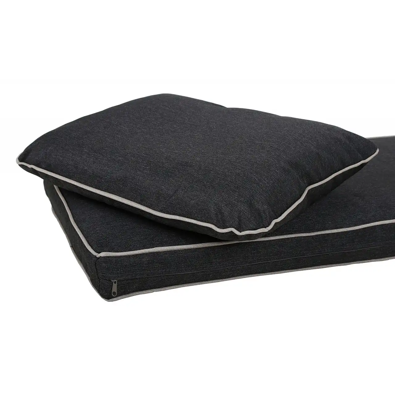 Стільниця виготовлена із загартованого скла, стійкого до розтріскування. Сірі подушки виготовлені з міцної тканини, тому вони стійкі до зовнішніх умов. Наволочка стійка до вицвітання.
