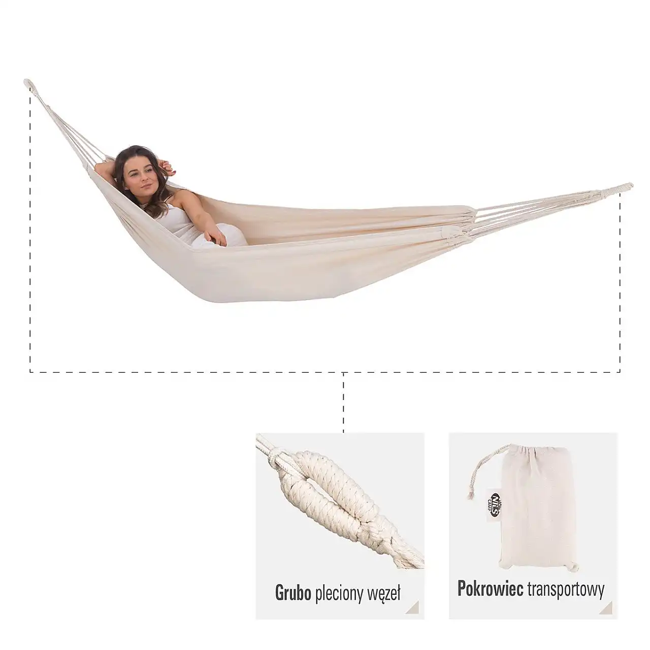 Гамак NC0032 від NILS CAMP - чудове рішення для тих, хто цінує відпочинок на свіжому повітрі в саду, лісі або на березі озера. Це гамак, призначений для підвішування між деревами або на каркасі.