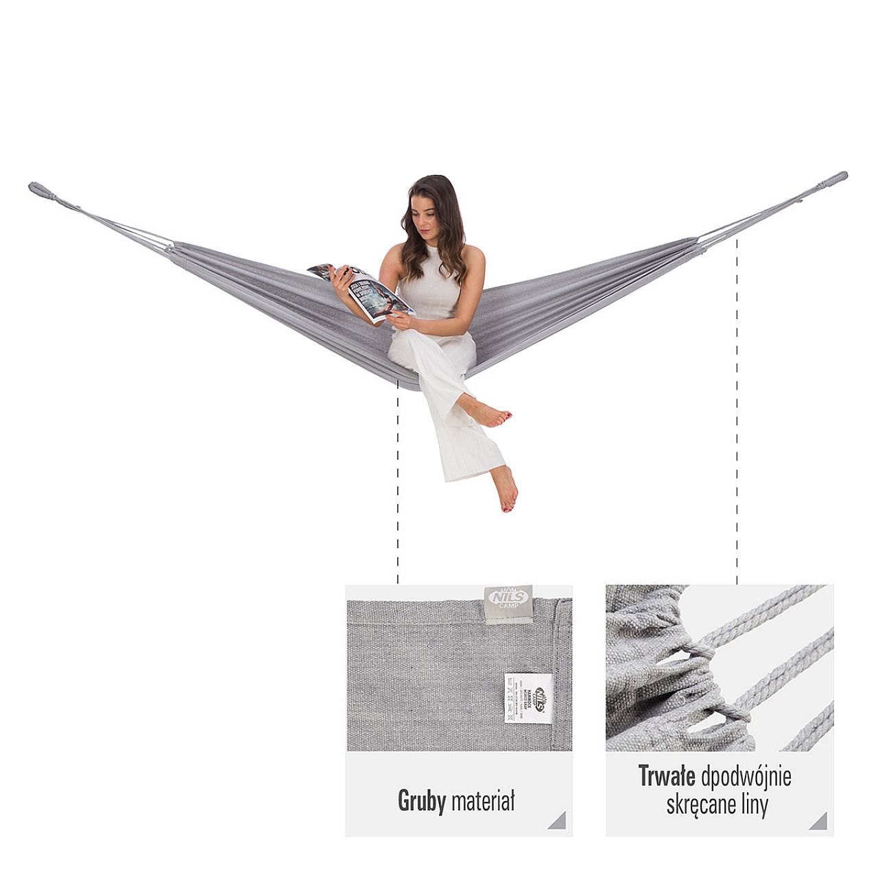 Гамак NC0032 від NILS CAMP - чудове рішення для тих, хто цінує відпочинок на свіжому повітрі в саду, лісі або на березі озера. Це гамак, призначений для підвішування між деревами або на каркасі.
