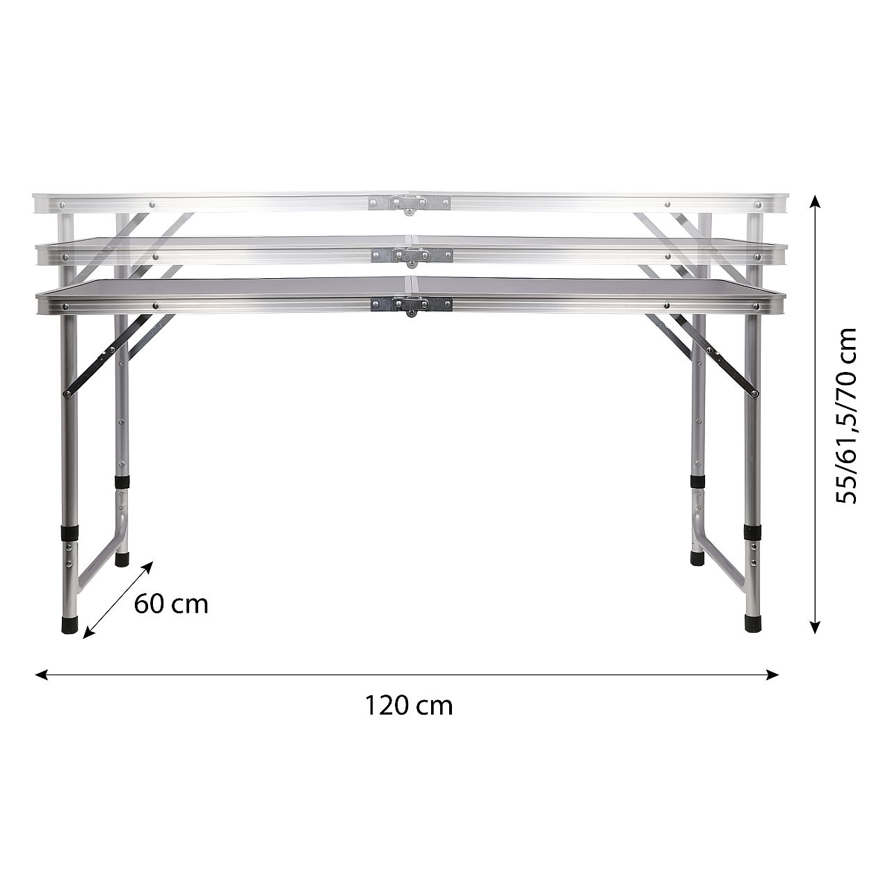 Цей унікальний стіл виготовлений з високоякісних матеріалів - міцна алюмінієва конструкція і стільниця з МДФ плити забезпечують стійкість і малу вагу самого виробу.