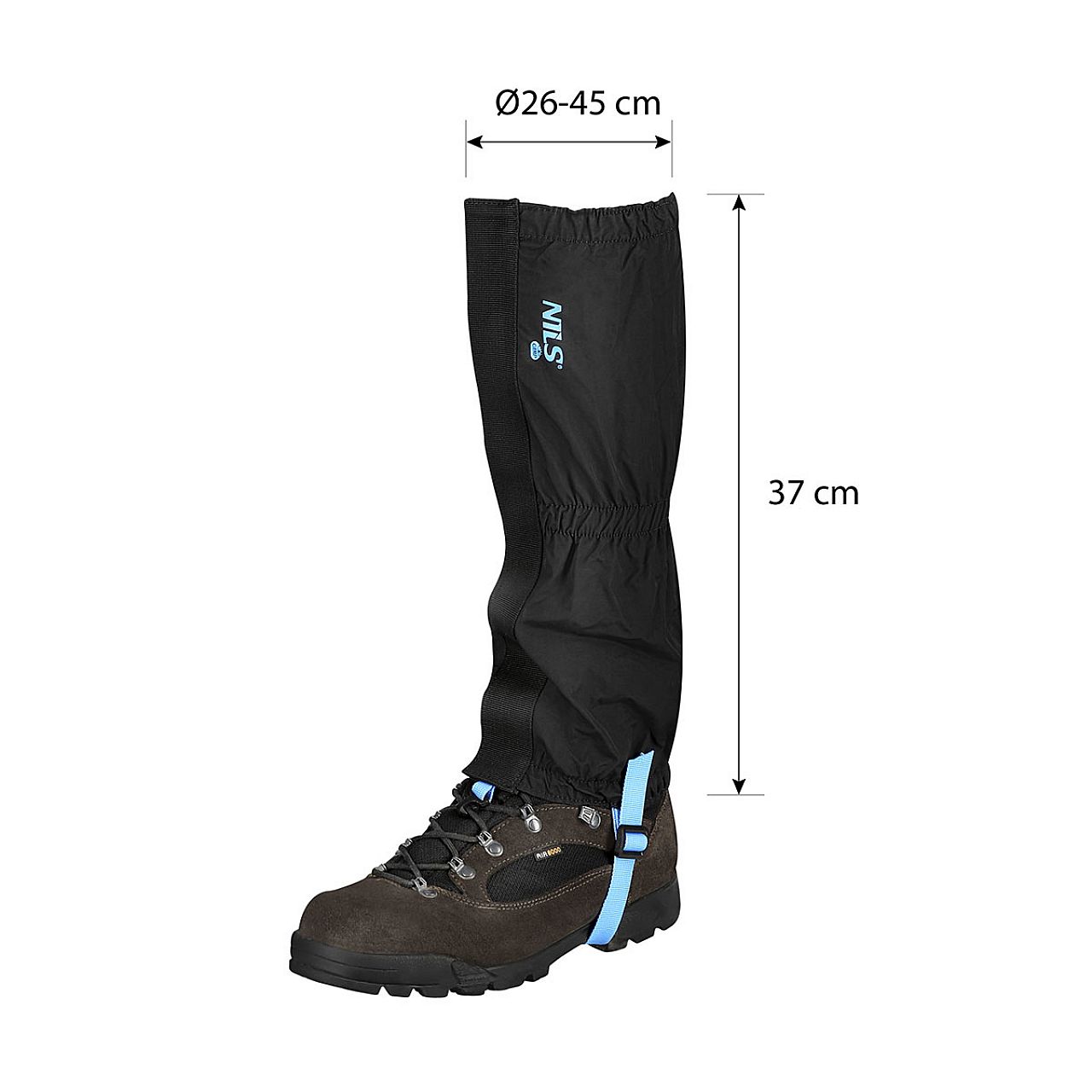 NC1765 від NILS CAMP - водонепроникні гетри з міцного та легкого матеріалу, які успішно захистять верх взуття та штанину від снігу, води чи бруду. NC1765 має застібку на липучці, ремінець і гачок для кріплення до шнурків. Усі ці функції забезпечують правильну посадку на нозі, що робить гетри придатними для найвибагливіших гірських умов.