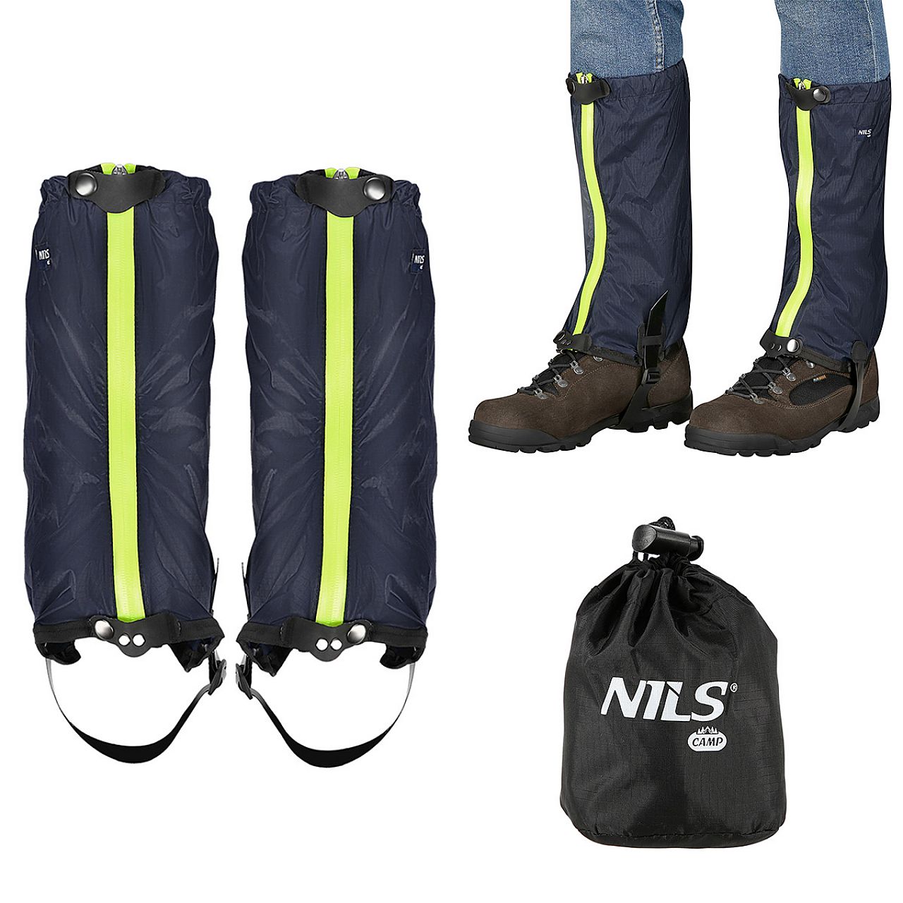 NC1770 від NILS CAMP - водонепроникні гетри з міцного та легкого матеріалу, які успішно захистять верх взуття та штанину від снігу, води чи бруду. NC1770 дуже прості та легкі в установці. Гетри мають застібку-блискавку, ремінець і гачок для кріплення до шнурків. Усі ці функції забезпечують правильну посадку на нозі, що робить гетри придатними для найвибагливіших гірських умов.