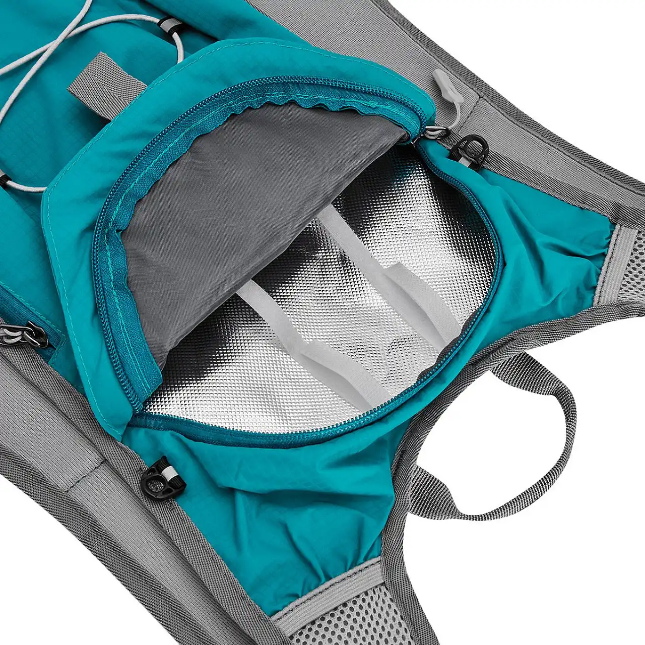 Основне відділення на блискавці має два додаткових відділення. Одна з них має спеціальні ручки, на які кріпиться пляшка з водою. Додатково перегородка оснащена термостінкою, що дозволяє довше підтримувати постійну температуру рідини всередині сечового міхура.