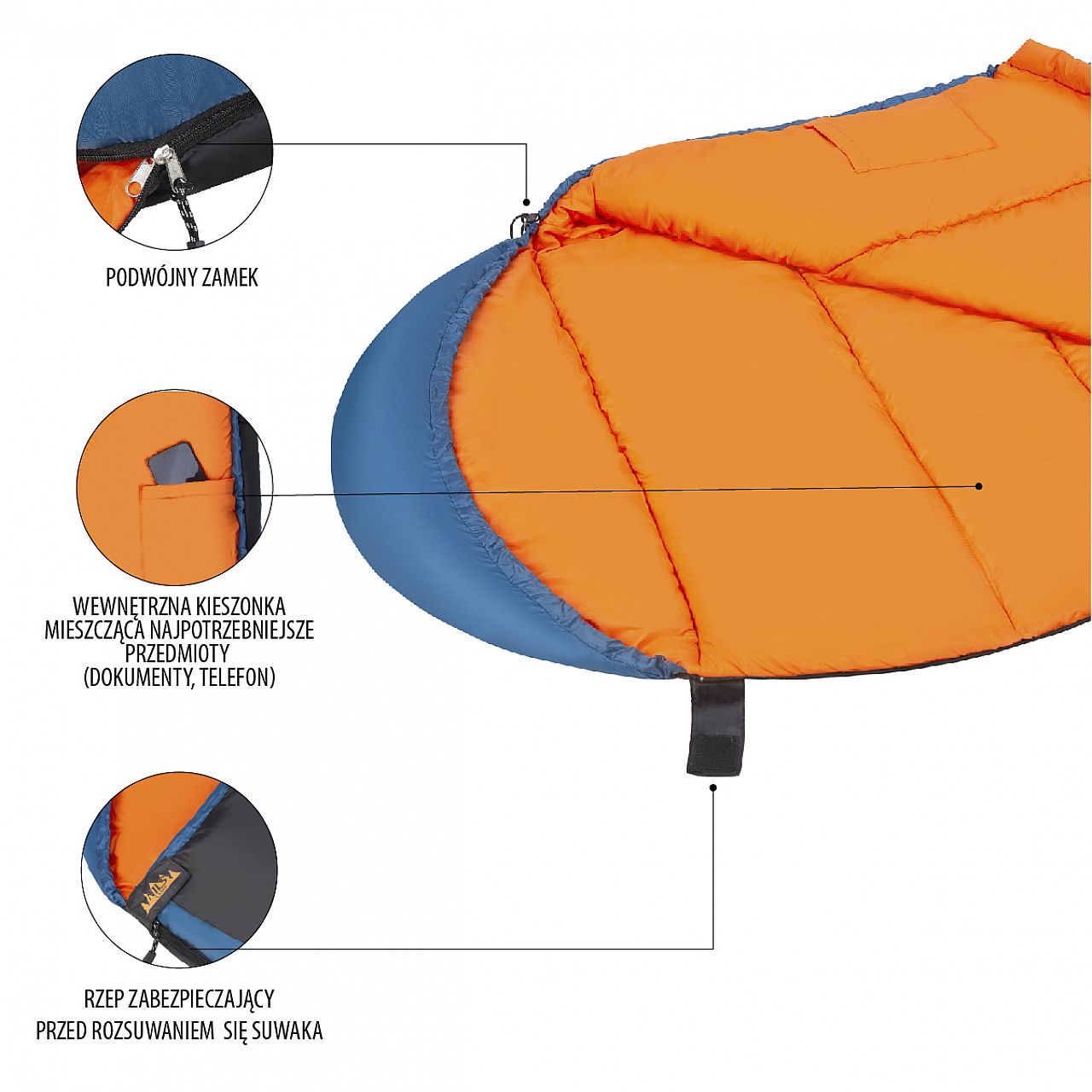 Характеризується дуже гарною якістю виготовлення та найкращими матеріалами. Наповнювач - унікальна технологія Hollow fiber, а зовнішній матеріал - міцна сучасна поліестерова тканина. Додатково вони покриті покриттям, яке не пропускає холод і вологу. Це забезпечує спокійний теплий сон навіть при дуже низьких температурах, що досягають нуля градусів. Для ще більшого комфорту використання спальник має спеціальну прошивку, яка запобігає зсуву наповнювача. Крім того, капюшон, розташований у верхній частині, завдяки шнуркам гарантує стабільне розташування подушки. NC2012, застібається на блискавку, а липучка на кінці запобігає розсуванню. Замок двосторонній, що дозволяє управляти ним зсередини.