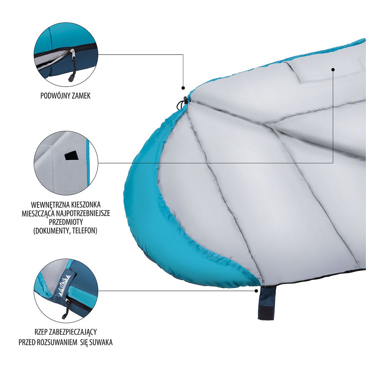 Характеризується дуже гарною якістю виготовлення та найкращими матеріалами. Наповнювач - унікальна технологія Hollow fiber, а зовнішній матеріал - міцна і сучасна поліефірна тканина. Додатково вони покриті покриттям, яке не пропускає холод і вологу. Це забезпечує спокійний теплий сон навіть при дуже низьких температурах, що досягають нуля градусів. Для ще більшого комфорту використання спальник має спеціальну прошивку, яка запобігає зсуву наповнювача. Крім того, капюшон, розташований у верхній частині, завдяки шнуркам гарантує стабільне розташування подушки. NC2012 застібається на блискавку, а липучка на кінці запобігає розсуванню. Замок двосторонній, що дозволяє управляти ним зсередини.