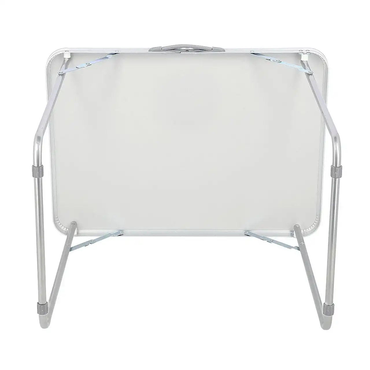 Це дуже легкий і в той же час міцний стіл, який буде працювати в будь-яких умовах. Стільниця з МДФ була додатково покрита шпоном, щоб зробити її ще більш міцною та стійкою до погодних умов. Він не боїться ні вологи, ні дуже високих температур, його дуже легко підтримувати в чистоті. У свою чергу, його досить значні розміри вміщають все, що належить на туристичному столику. Безперечною перевагою цієї моделі є можливість складання. У складеному вигляді він займає мало місця, а завдяки наявній ручці дуже зручний. Ми легко можемо брати його з собою в будь-яку подорож.