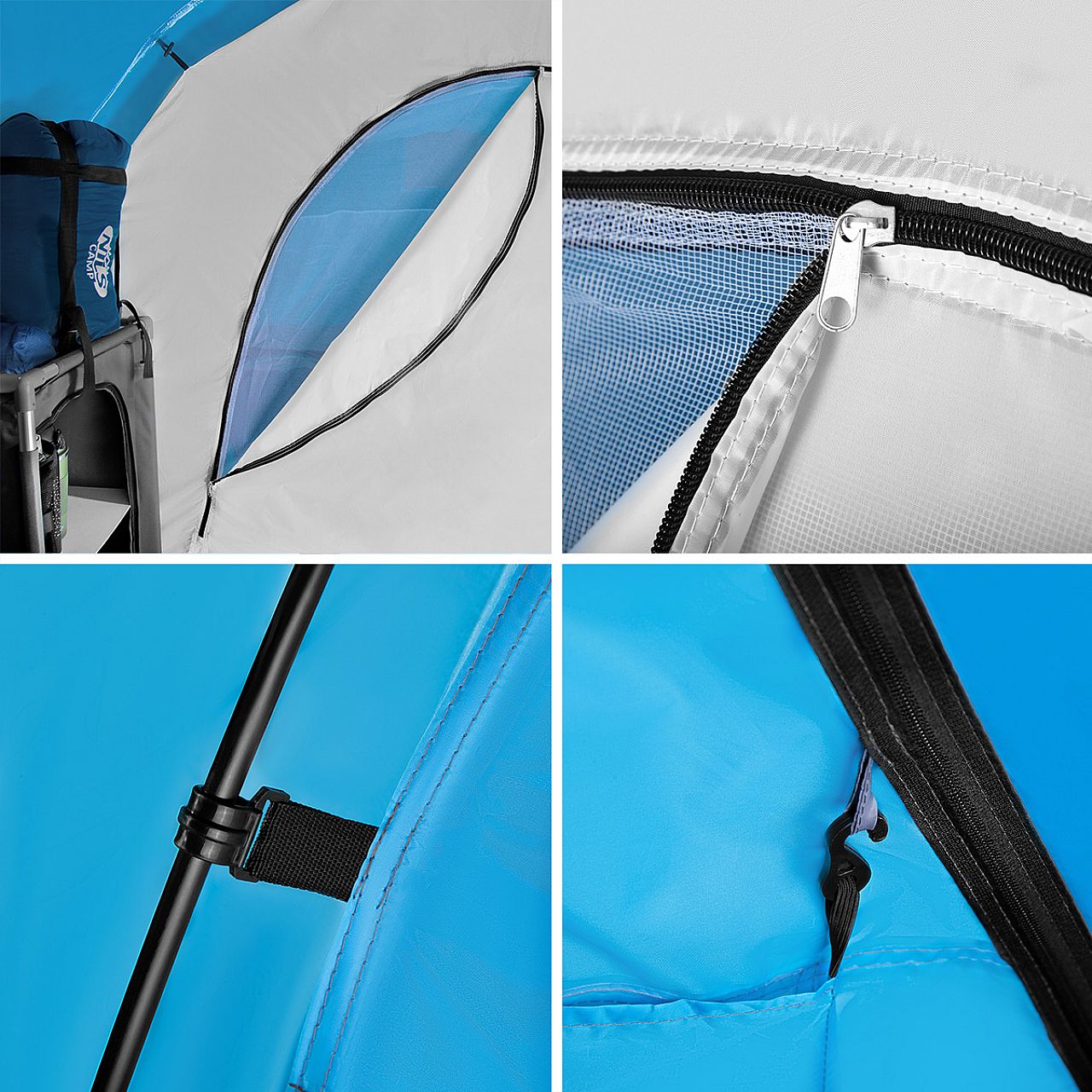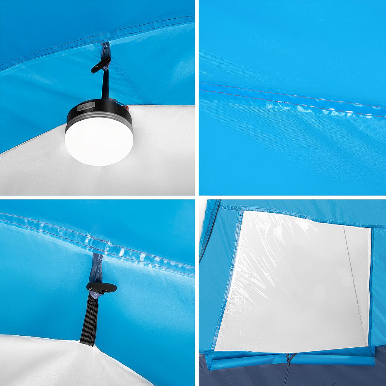 Додатково намет оснащений двома внутрішніми кишенями для зберігання підручних речей і ручкою під стелею, завдяки якій можна повісити лампу.